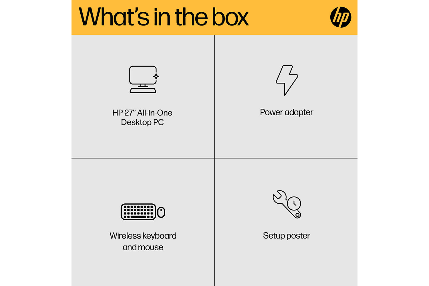 Consciously designed thinking about the planet This slim, HP 27" All-in-One Desktop PC empowers you to do more while using less. Responsibly manufactured using post-consumer recycled and ocean-bound plastics[1] and is Epeat Gold Registered and Energy Star Certified[2]. With a powerful processor, upgraded memory and enhanced multitasking features, there’s no compromise for heightened performance. HP All-in-One 27-cr0021na PC. Processor family: AMD Ryzen 3. Internal memory: 8GB, Memory clock speed: 5500 MHz. Total storage capacity: 512GB, Storage media: SSD.