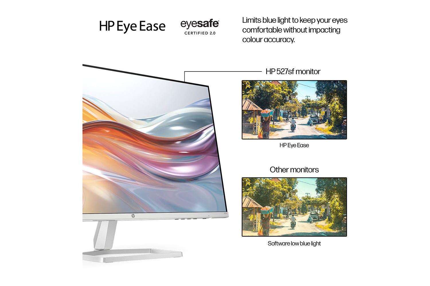 From mastering new skills to diving into a hobby, this 27" FHD monitor is designed to help keep you focused. With a tilt adjust stand and the Ergonomic Setup Guide 4 in HP Display Center you can customize your comfort. Plus, HP Eye Ease with Eyesafe certification limits blue light to keep your eyes comfortable without impacting color accuracy, so you can do more, longer.