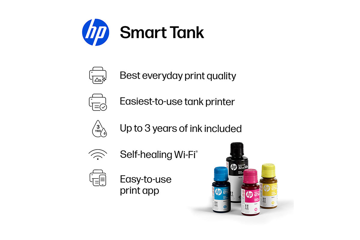 Count on excellent print quality and reliability at an extremely low cost per page.[5] hp’s unique ink tank system gives you an easy, spill-free refill experience with resealable bottles.[4]