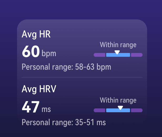 Track how well you've slept and how well you've recovered from fatigue and stress, with new-found insights from the cutting-edge average sleep HRV metric and abnormal breathing alerts.[19] Benefit from timely notifications whenever your physiological data strays from your personal range.[20]