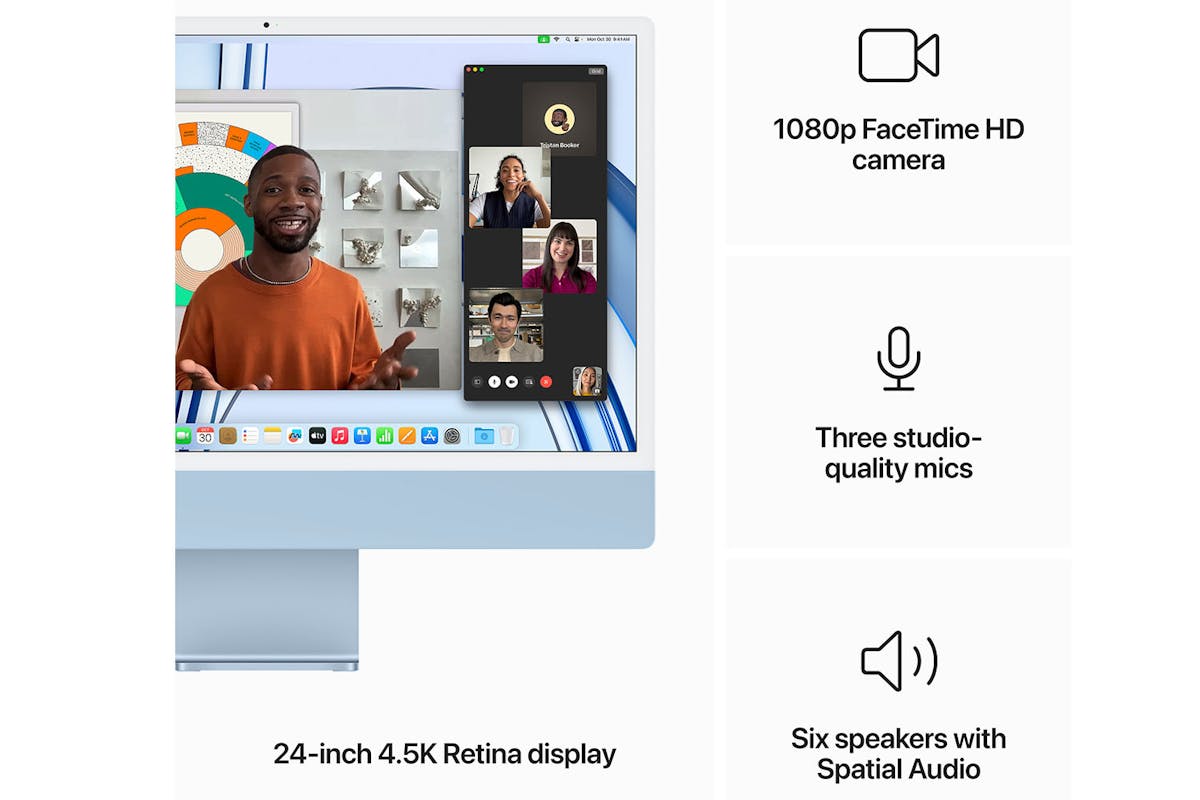 The 24-inch 4.5K Retina display[1] features 500 nits of brightness and support for 1 billion colours. Everything from streaming movies to editing photos is sharp and colourful.