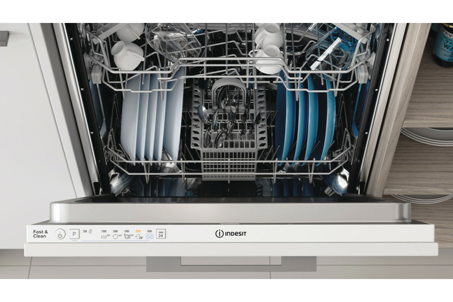 Schedule your wash cycle for a time that suits. Simply set the program and your Indesit dishwasher will do the rest.
