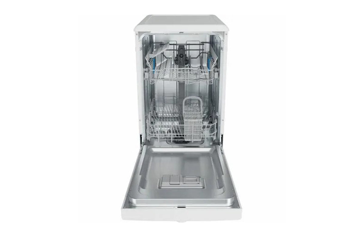 If you're limited on kitchen space, this Indesit slimline freestanding dishwasher fits perfectly into a 45cm area. Despite its compact size, it can accommodate up to 10 place settings, making post-meal clean-up a breeze. Adjustable baskets make it simple to fit larger and more awkward items when needed, while the Rapid 40 cycle quickly washes small loads when you're short on time. Plus, you can choose from 6 programmes via an easy-to-use dial control, making clean-up easier than ever.
