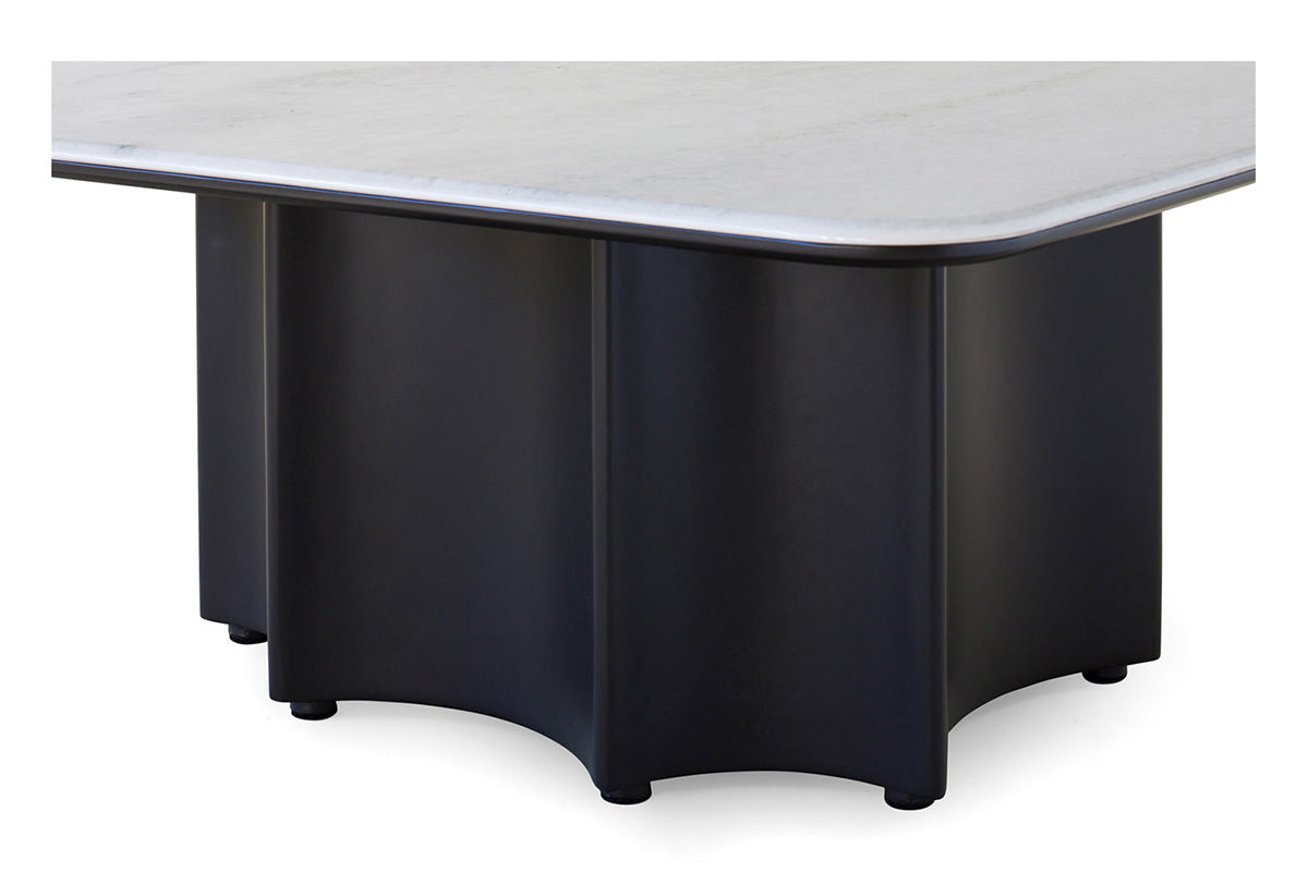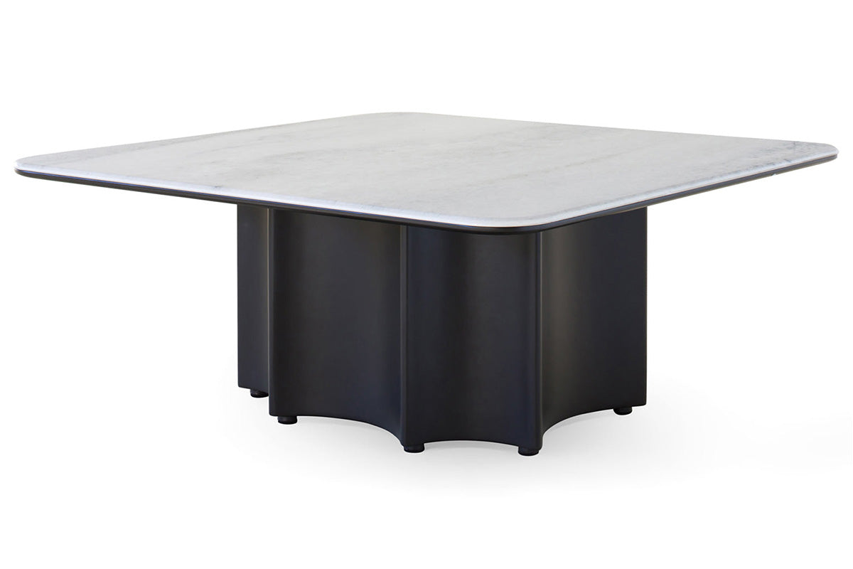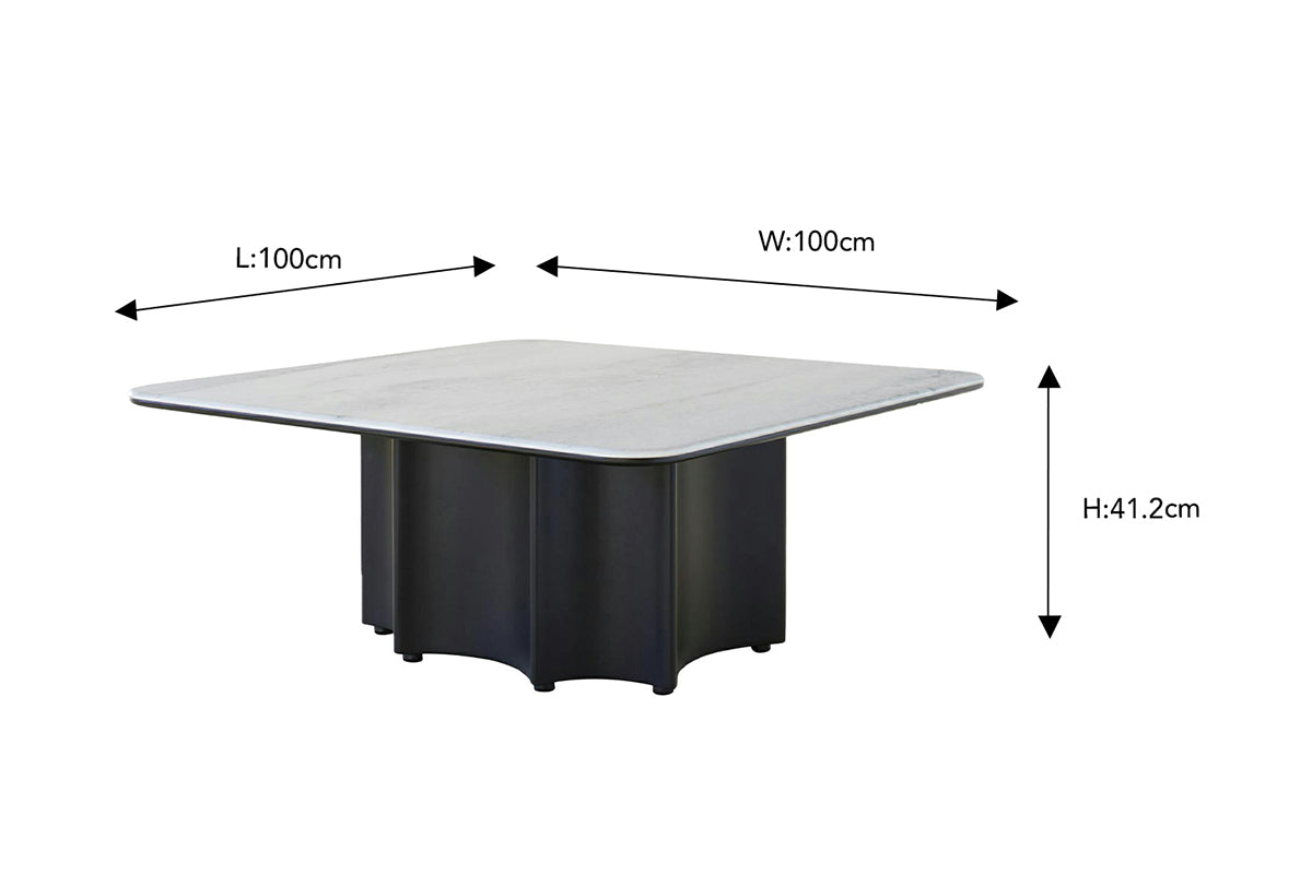 Combining durability and style, the Irish square table features a stone tabletop that is heat-, cold-, and scratch-resistant ensuring it looks and feels great for years to come. Its rests upon complementing black metal pillar that elevates this look further. It’s also available as a round coffee table.