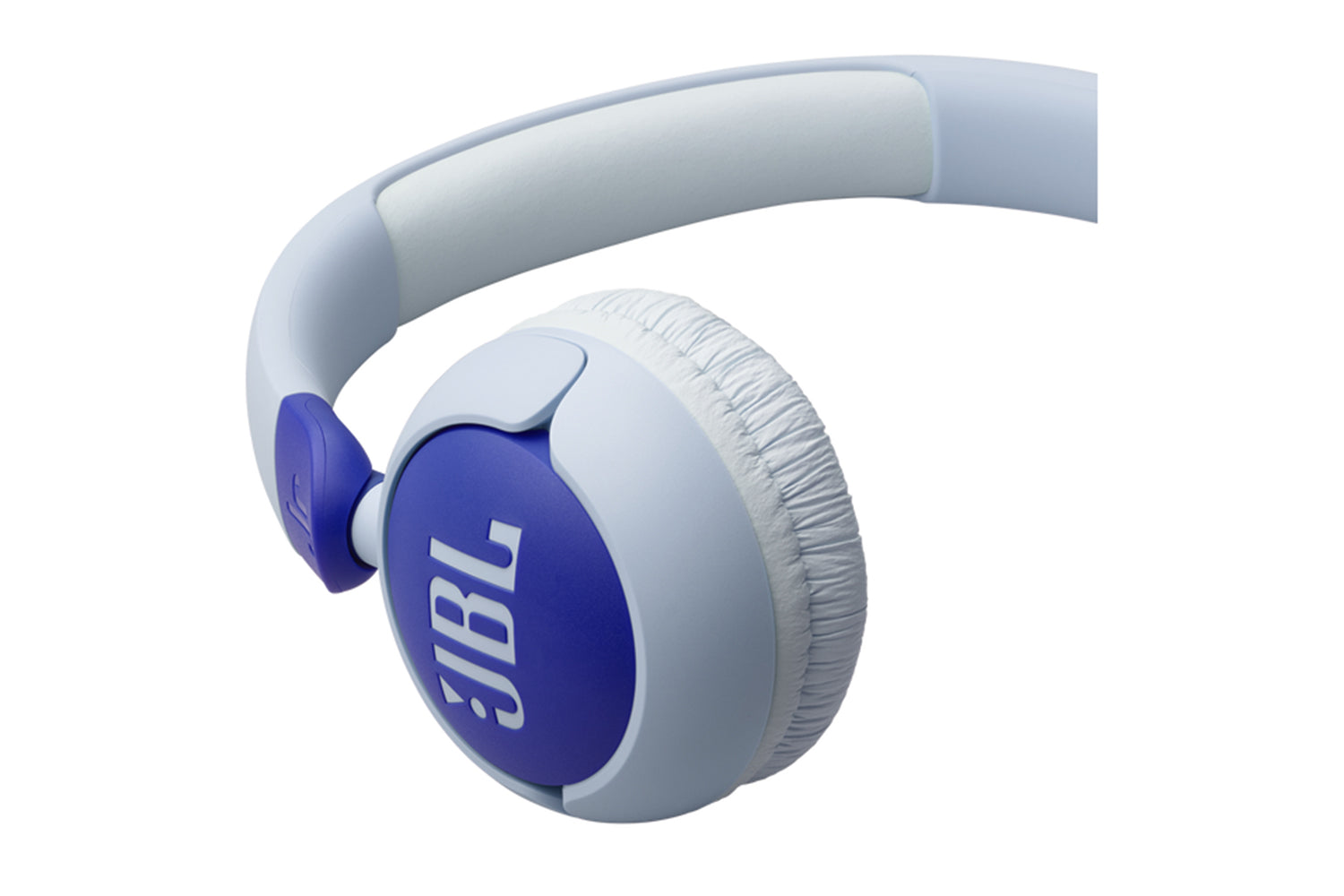 JBL Junior 320 headphones come in two fun colorways and have durable, child-friendly controls that are easy and safe for kids to operate. The headband features a 12mm thick soft pad for long-wearing comfort. And their round earcup design offers improved grip and less sound leakage, so kids don't need to turn them up louder to compete with outside noise.