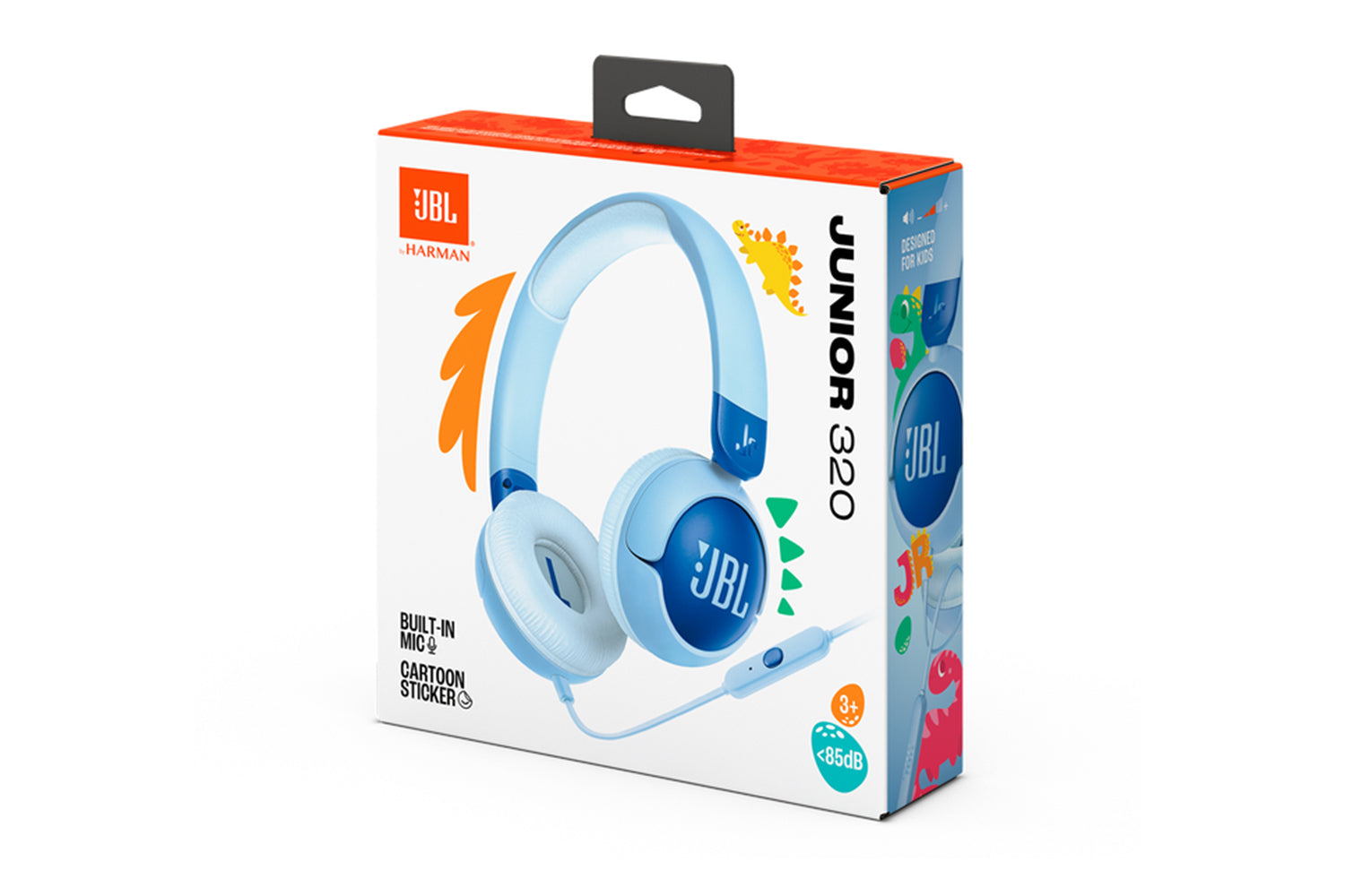 JBL Junior 320 wired on-ear headphones introduce a whole new generation to JBL sound at volumes that are safe for their ears. They won't go beyond 85dB, protecting young listeners from dangerous sound levels. Designed for young listeners, the JBL Junior 320 are comfortable to wear, with durable oversized controls that are easy for even the littlest hands to use. A built-in mic lets kids chat with family, friends, or teachers easily. The headphones come in two fun colorways and include a JBL sticker set so your little rockstars can personalize their look. Great sound has no age limit.