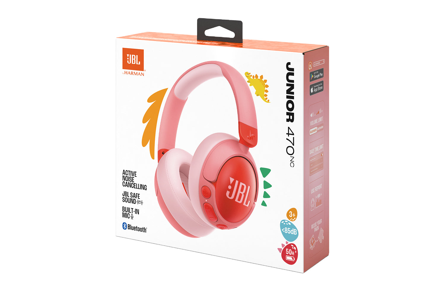 JBL Junior 470NC wireless noise-cancelling over-ear headphones introduce a whole new generation to JBL Sound at volumes that are safe for their ears. They won’t go beyond 85dB, protecting young listeners from dangerous sound levels, and feature Active Noise Cancelling, so a noisy environment won't make kids want to crank up the volume. You can use the JBL Headphones app to customize their maximum volume and daily listening time, and get daily or weekly reports on your child's listening activity. Designed for kids, the JBL Junior 470NC are comfortable to wear, with durable oversized controls that are easy for even the littlest hands to use. Up to 50 hours* of battery life means long-lasting fun, and a built-in mic lets kids chat with family, friends, or teachers easily. They include a JBL sticker set so your little rockstars can personalize their look. Great sound has no age limit. (*with ANC off)