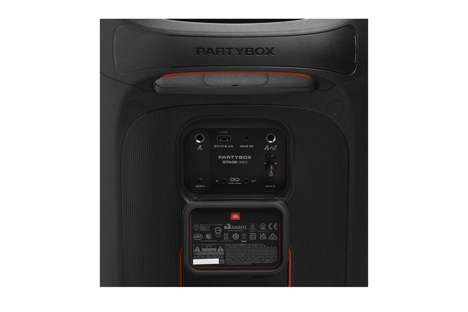 Whether you're partying with friends in the park or by the seaside, the JBL PartyBox Stage 320 is IPX4 splashproof, means a little rain won't stop the fun.