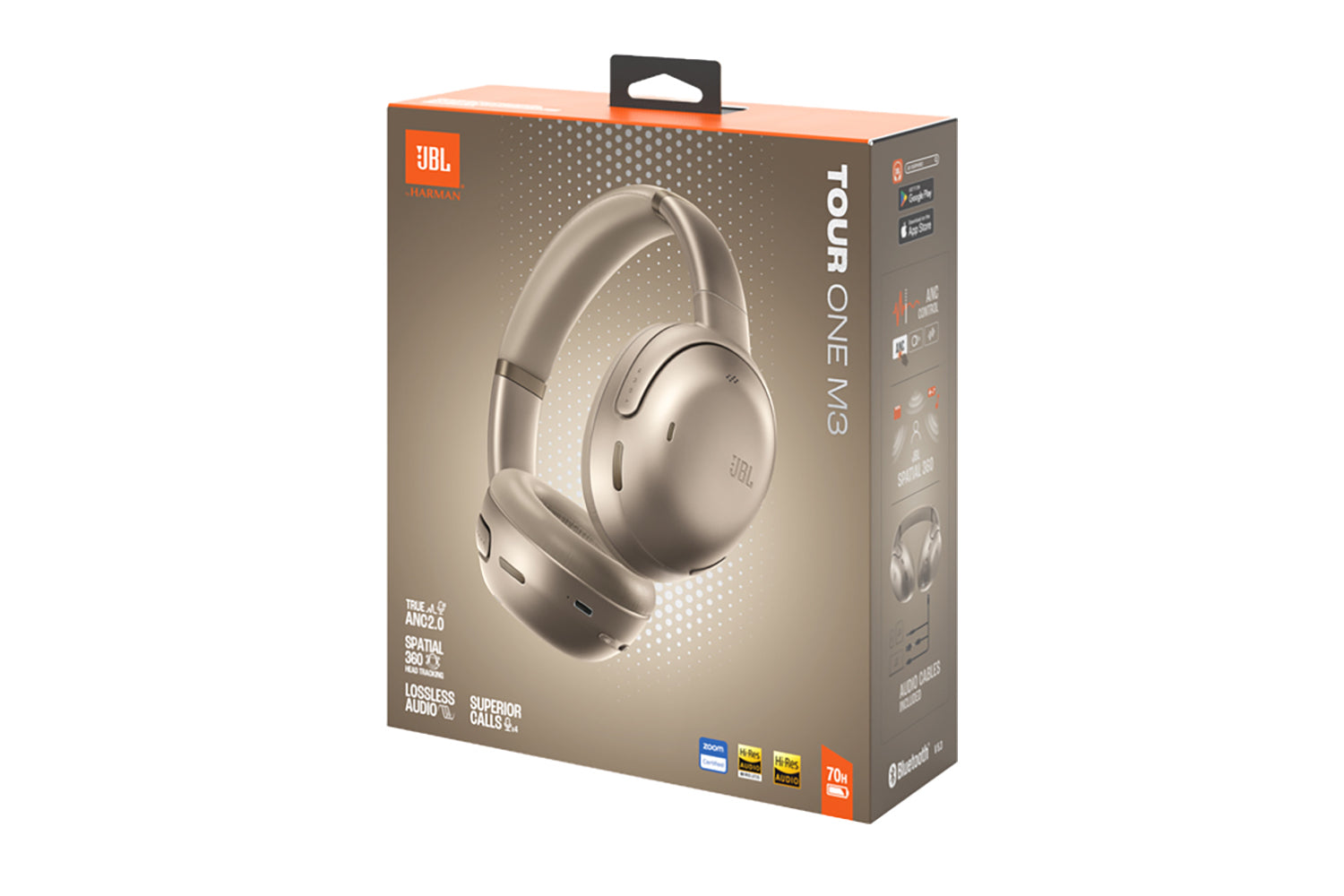 Get ready for the JBL Tour One M3, JBL best-sounding and most feature-rich over-ear headphones ever. Lose yourself in lossless audio from the built-in 192kHz 24bit DAC. Make the miles disappear with music and movies from the in-flight entertainment system using the included 3.5mm cable (a USB-C cable is also included). Or go wireless with stunning Hi-Res Audio via Bluetooth. JBL Spatial 360 sound with integrated head tracking makes music and movies even more immersive. True Adaptive Noise Cancelling 2.0 tunes out distracting ambient noise in real time, so you can concentrate on your work—or your favorite playlist. Use the JBL Headphones app to customize your sound and have full control over all functions of your source app.
