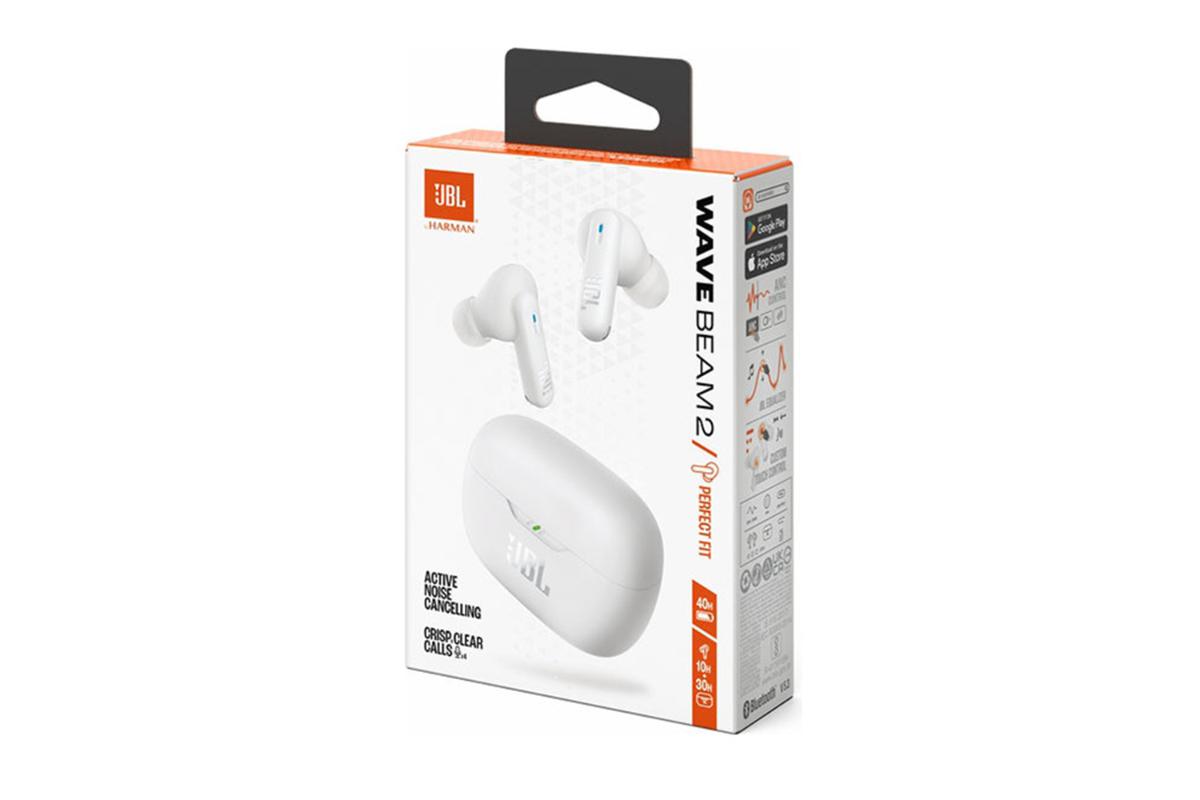 Quality sound just got easier—and more fun. JBL Wave Beam 2 earbuds feature exciting JBL Pure Bass Sound, plus Active Noise Cancelling and Smart Ambient technology so you decide how much of the outside world you want to hear. Manage hands-free crisp, clear calls with just a tap on the earbuds. Use the JBL Headphones app to customize your sound and Voice Prompts language. Connect seamlessly with up to 8 Bluetooth® devices and switch effortlessly from one to another. And with up to 40 hours* of playback time, they’re a great everyday sound companion.