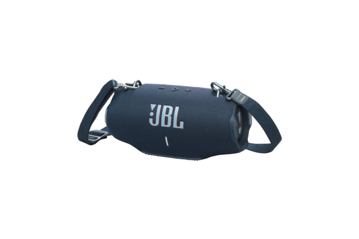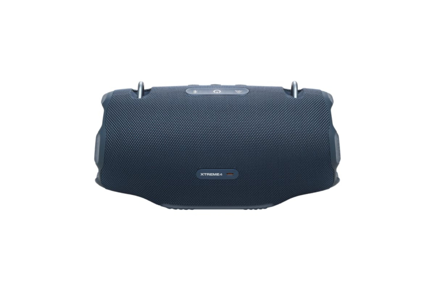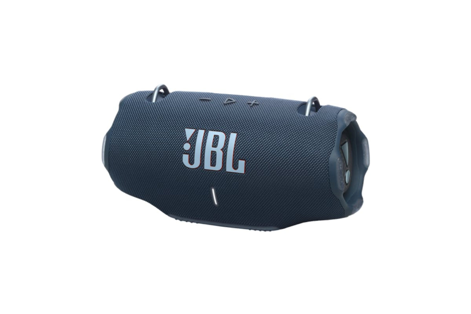 It's time to live loud! The JBL Xtreme 4 portable waterproof speaker delivers next-level massive JBL Pro Sound with amazing dynamics, even at top volume, thanks to two powerful woofers and two tweeters. Dual pumping JBL passive radiators give you deeper bass that moves you. Want to take your music outside? The handy shoulder strap makes it easy, while the rugged rubber bumpers and IP67 waterproof and dustproof rating mean that a sudden downpour or a dunk in the lake won't stop the fun. When it's time to create an even bigger audio experience, pair two Xtreme 4s for stereo sound. Or for your next party, use Auracast to connect the Xtreme 4 with any compatible JBL portable speakers, so your friends lounging poolside will vibe to the same playlist as the ones chatting indoors. 24 hours of playtime and a convenient power bank for your device mean you won't have to recharge until morning. All this, plus it's made with recycled plastic and recycled fabric. The JBL Xtreme 4 brings thrilling sound with you—everywhere.