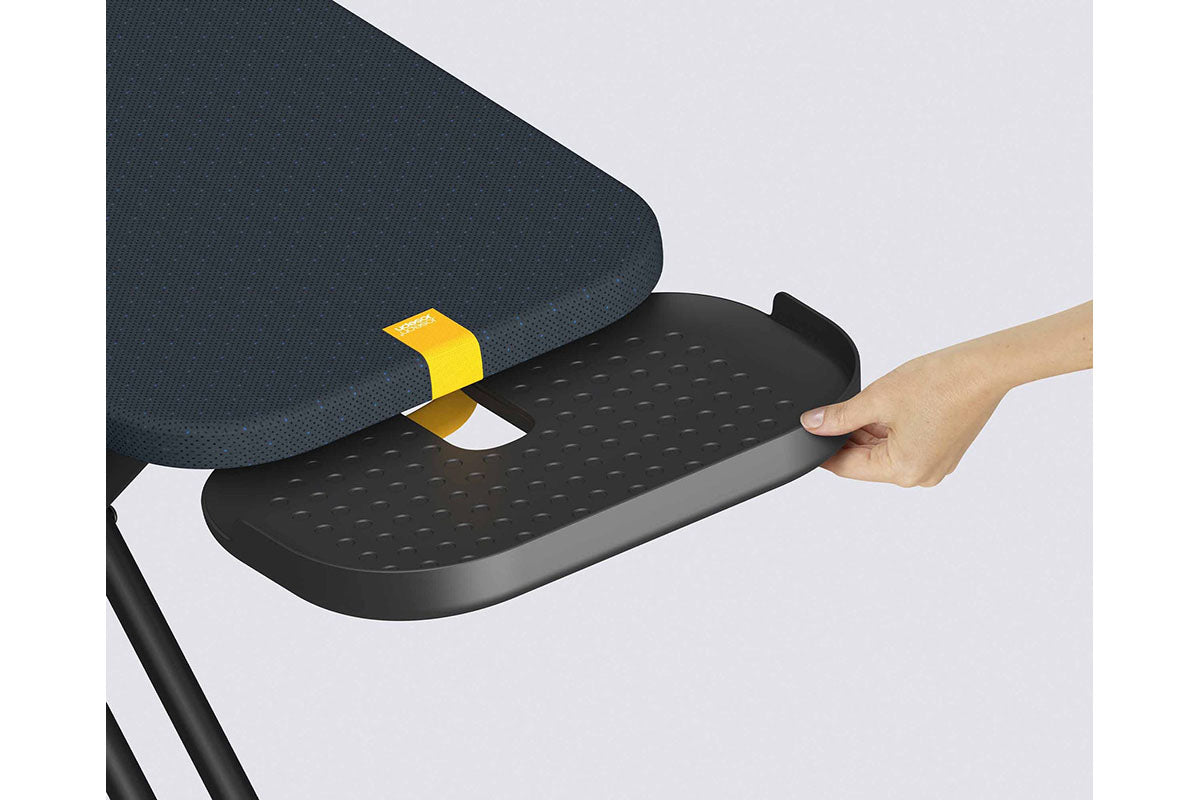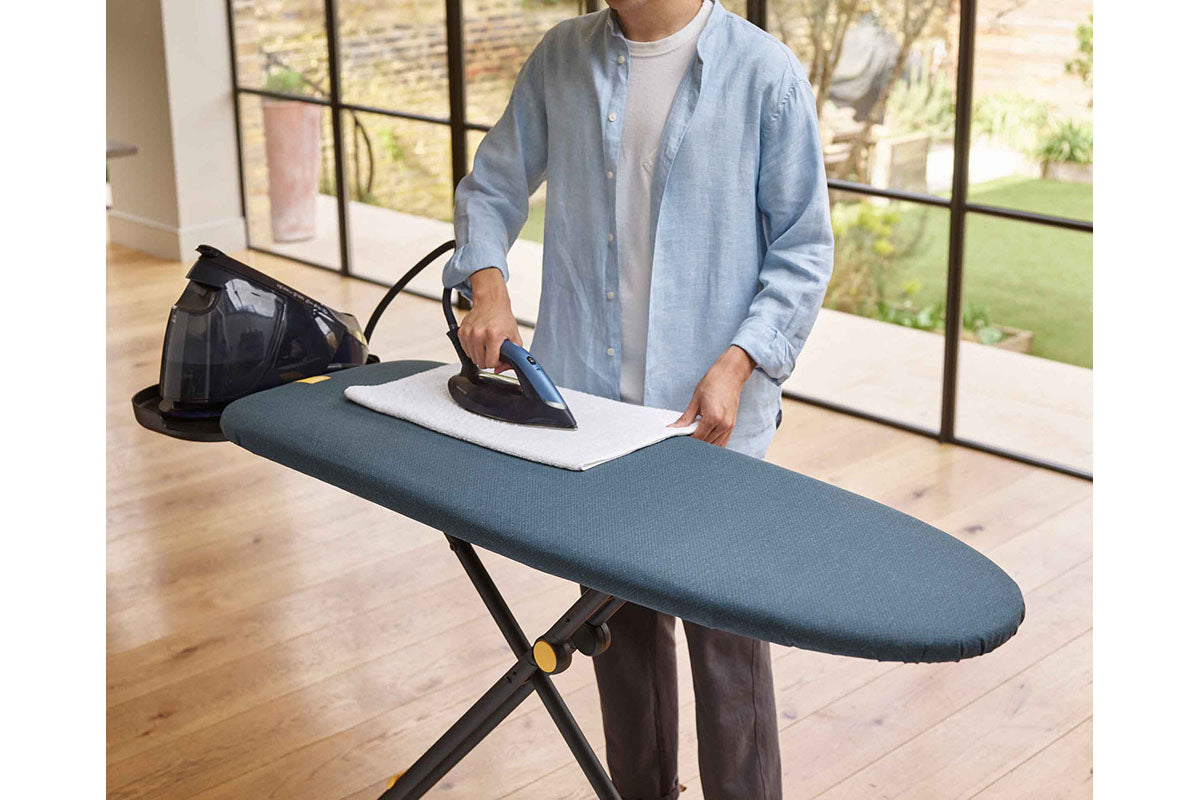 This compact and wide ironing board comes with an advanced, multi-layer cover with DripShield Technology that's been designed to cope with large volumes of ironing or for use with steam generator irons. An extra-large steam iron rest can be retracted when stored.