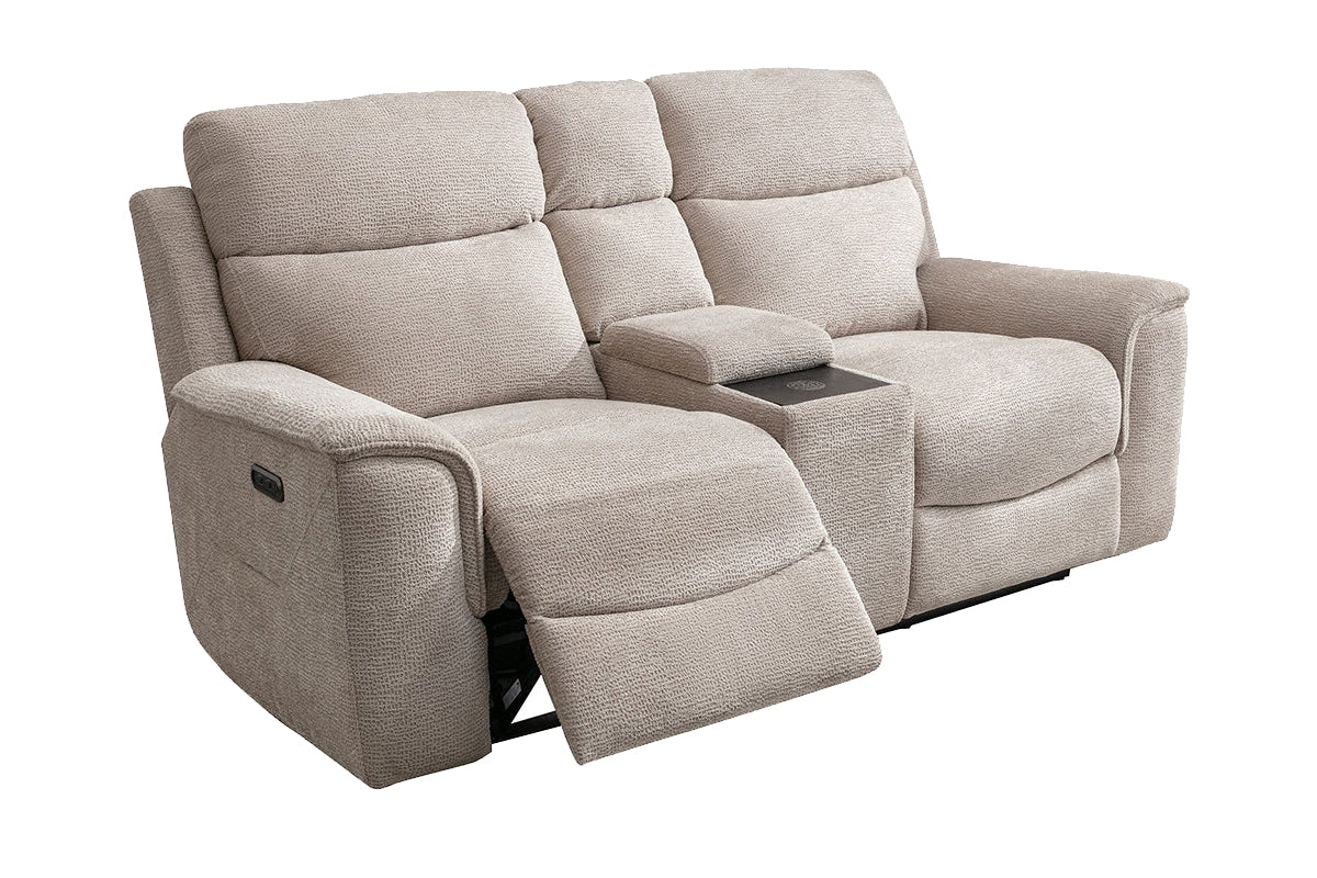 Create the perfect relaxing sanctuary without compromising on style with the Kent 2-seater console power recliner. Upholstered in a soft polyester fabric, this sofa is incredibly cosy and radiates a calm, relaxing feeling. The curved back and arms and the sumptuous cushioning evokes a feeling of warmth and comfort, thanks to its traditional shape and style. While the USB charging ports make sure you can stay connected while you unwind. In the middle of the two seats is a console that includes two cupholders and a storage area allowing you to relax while keeping essentials close to hand. Its neutral palette makes it the ideal piece for both traditional and contemporary style interiors and ensures it effortlessly integrates with a wide range of decorative styles.