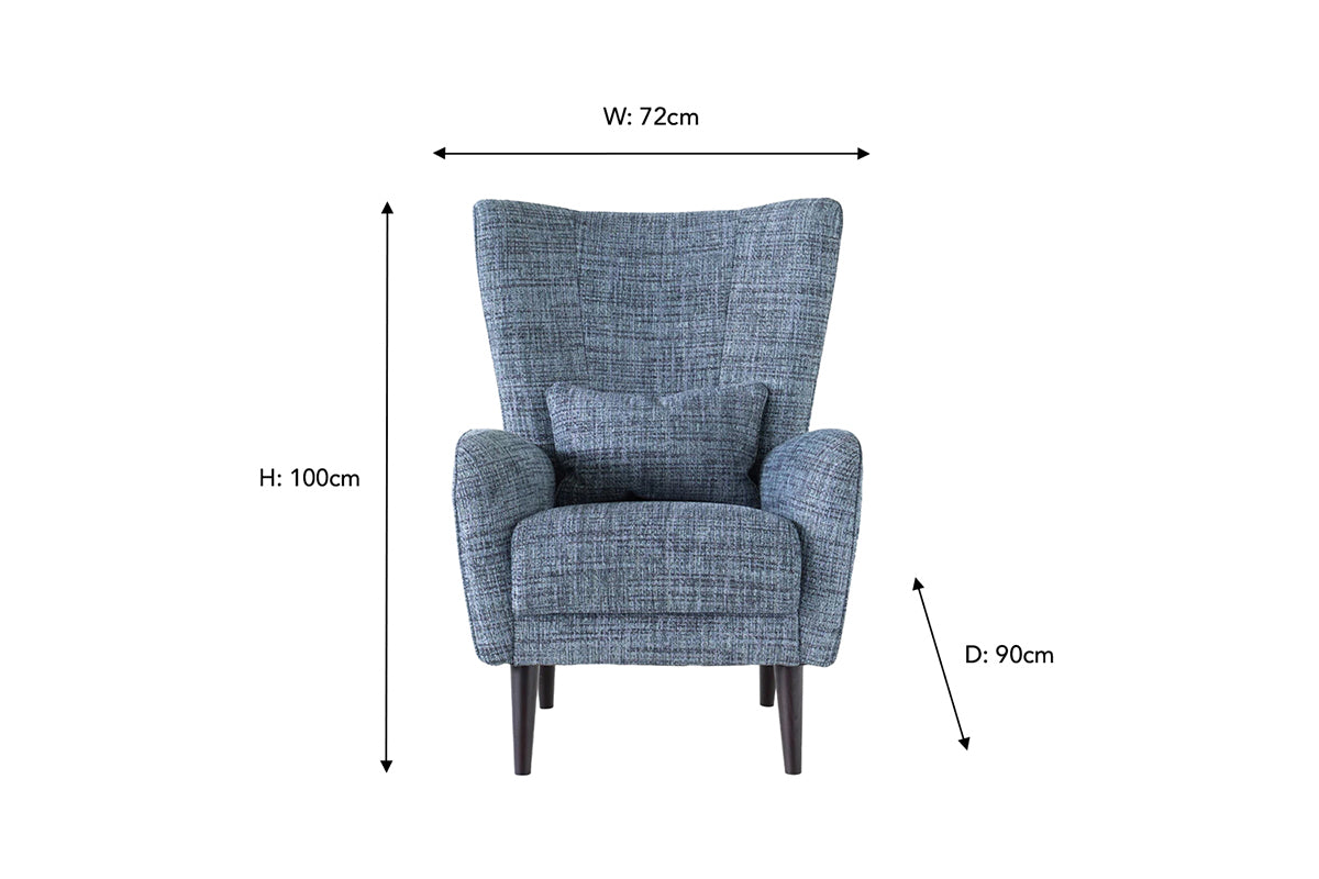 Beautifully designed this chair boasts a classic style with a contemporary twist. Upholstered in a soft fabric with a wide range of colours available, the Kenzie chair easily integrates with existing décor. It features a high winged back with curved armrests and wooden feet that really makes this item a stand-out piece.