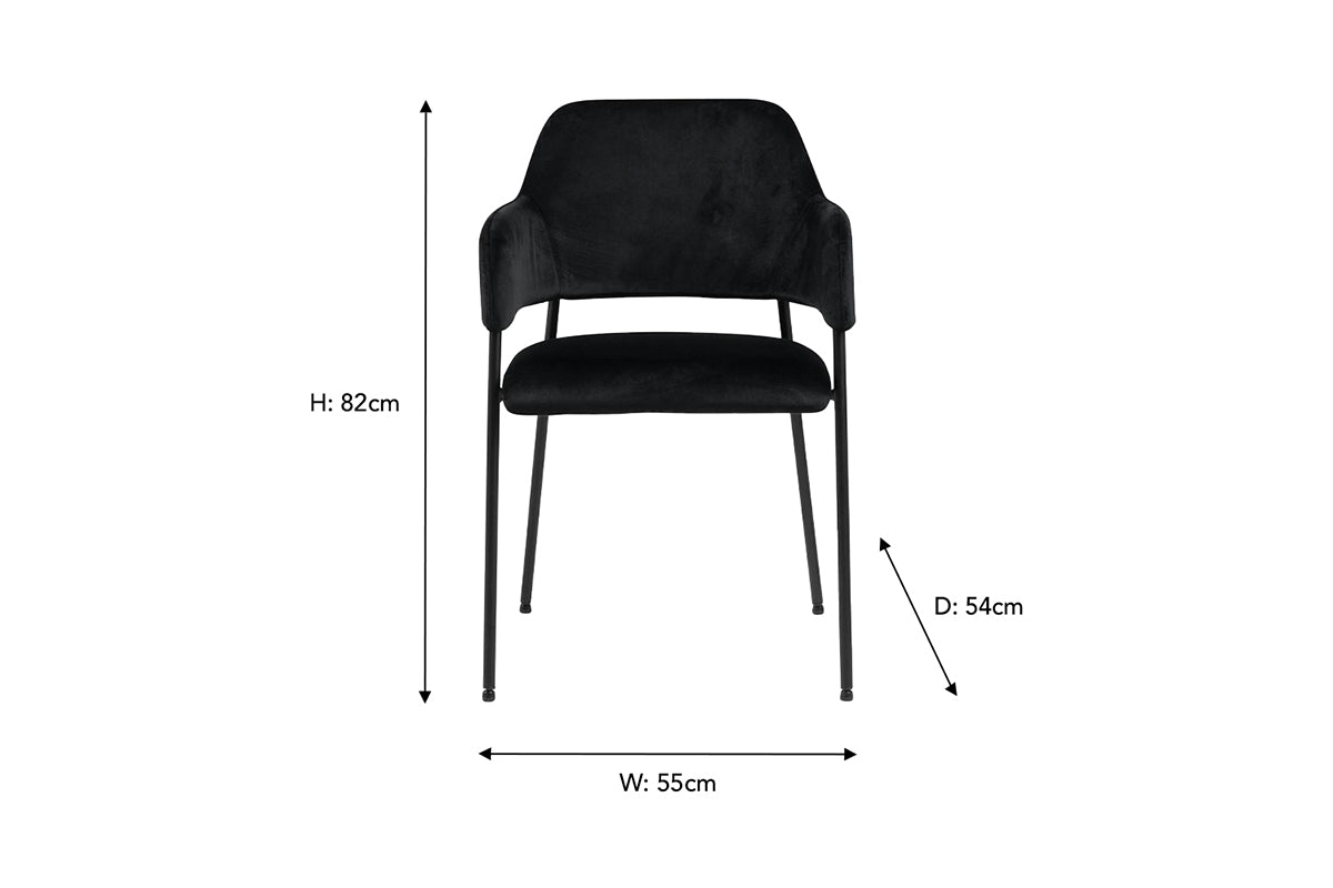 With a subtly curved form, the Krissy dining chair hugs you in and lets you dine in style. Upholstered in a soft velvet with a padded seat and back, this chair is incredibly inviting and comfortable. The seat and back has a characteristic gap that is connected by a black powder coated metal base that exudes modernity.