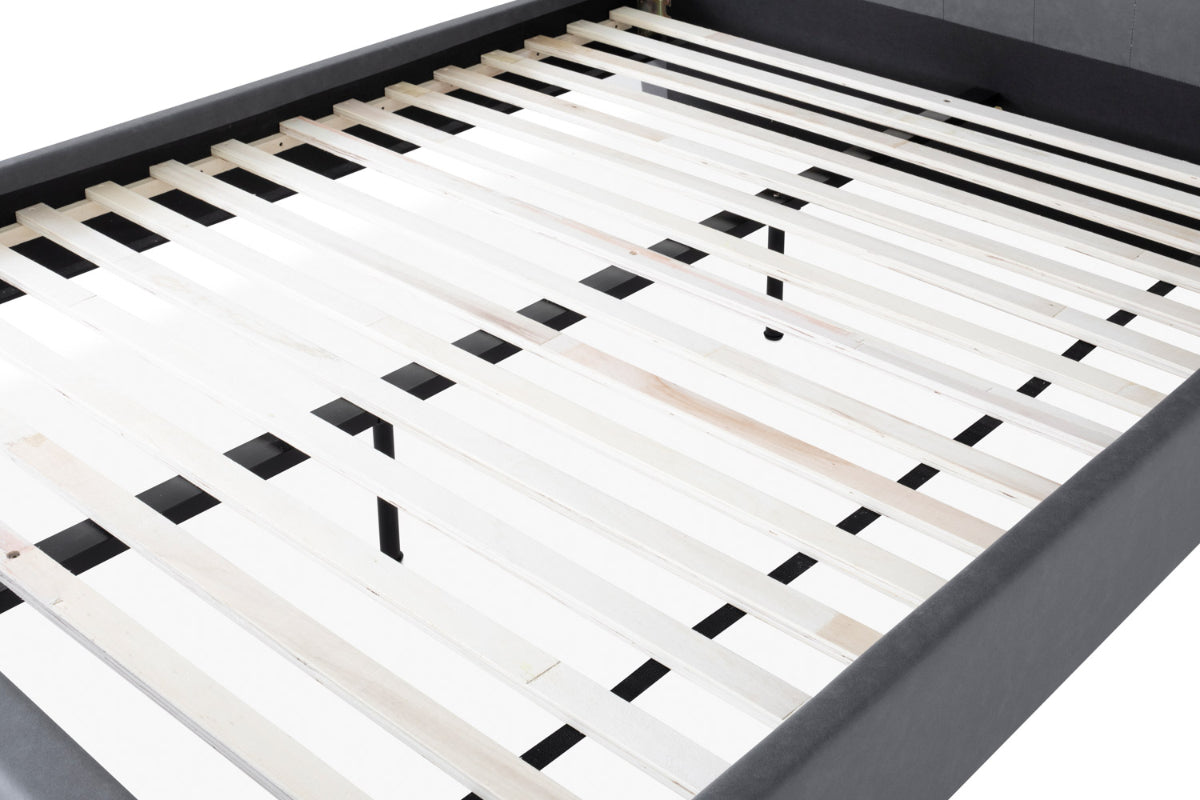 With so many eye-catching elements the Lewis bedframe is sure to elevate your bedroom décor. Featuring a shapely curved headboard with button back detailing and finished with sleek black metal legs giving it that contemporary look and feel. It has a centre supporting rail for support and durability ensuring this will be a staple in your home for years to come.