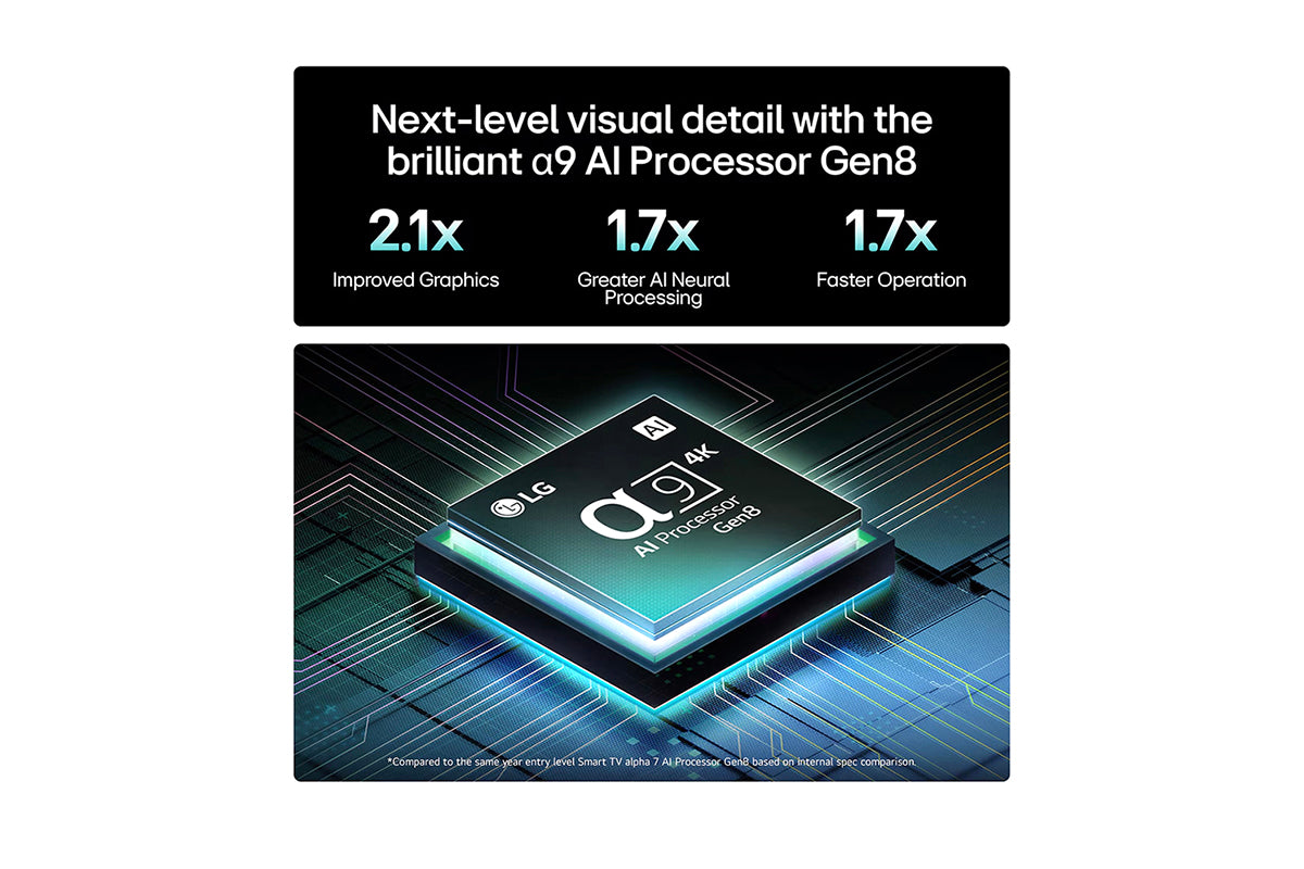 *Compared to the same year entry level Smart TV alpha 7 AI Processor Gen8 based on internal spec comparison.
