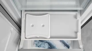 The top drawer in the freezer is often a bit of a mystery because you just can’t see what’s up there. A simple tilting function on the drawer allows it to be angled downwards when opened. This gives you a complete overview all the time. It also makes it easier to add and remove frozen goods. And the pull-out stop ensures the compartment does not fall out.