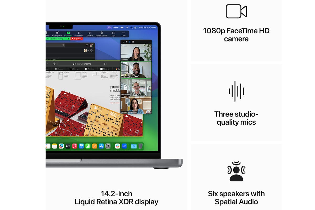 Look sharp and sound great with a 1080p FaceTime HD camera, a studio-quality three-mic array and a six-speaker sound system with Spatial Audio.