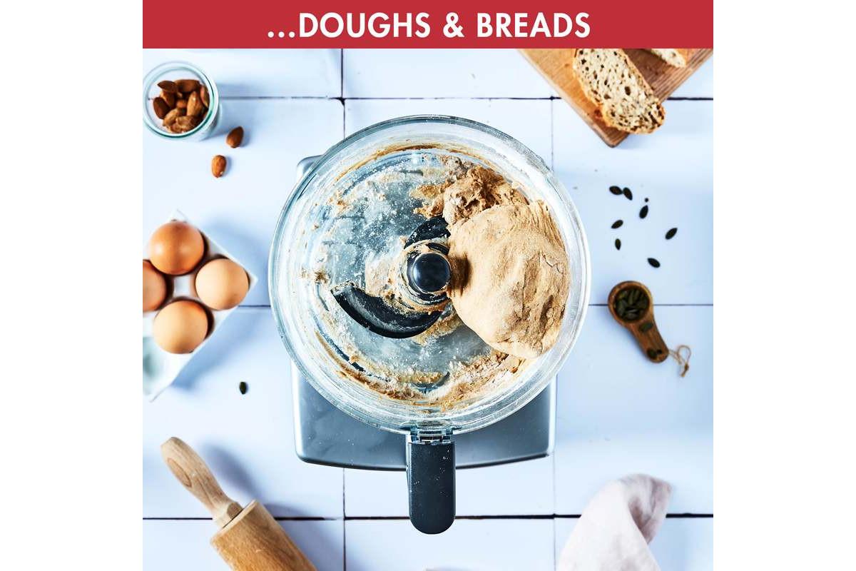 • Includes everything you’ll need to slice, grate, chop, whisk, blend and knead
