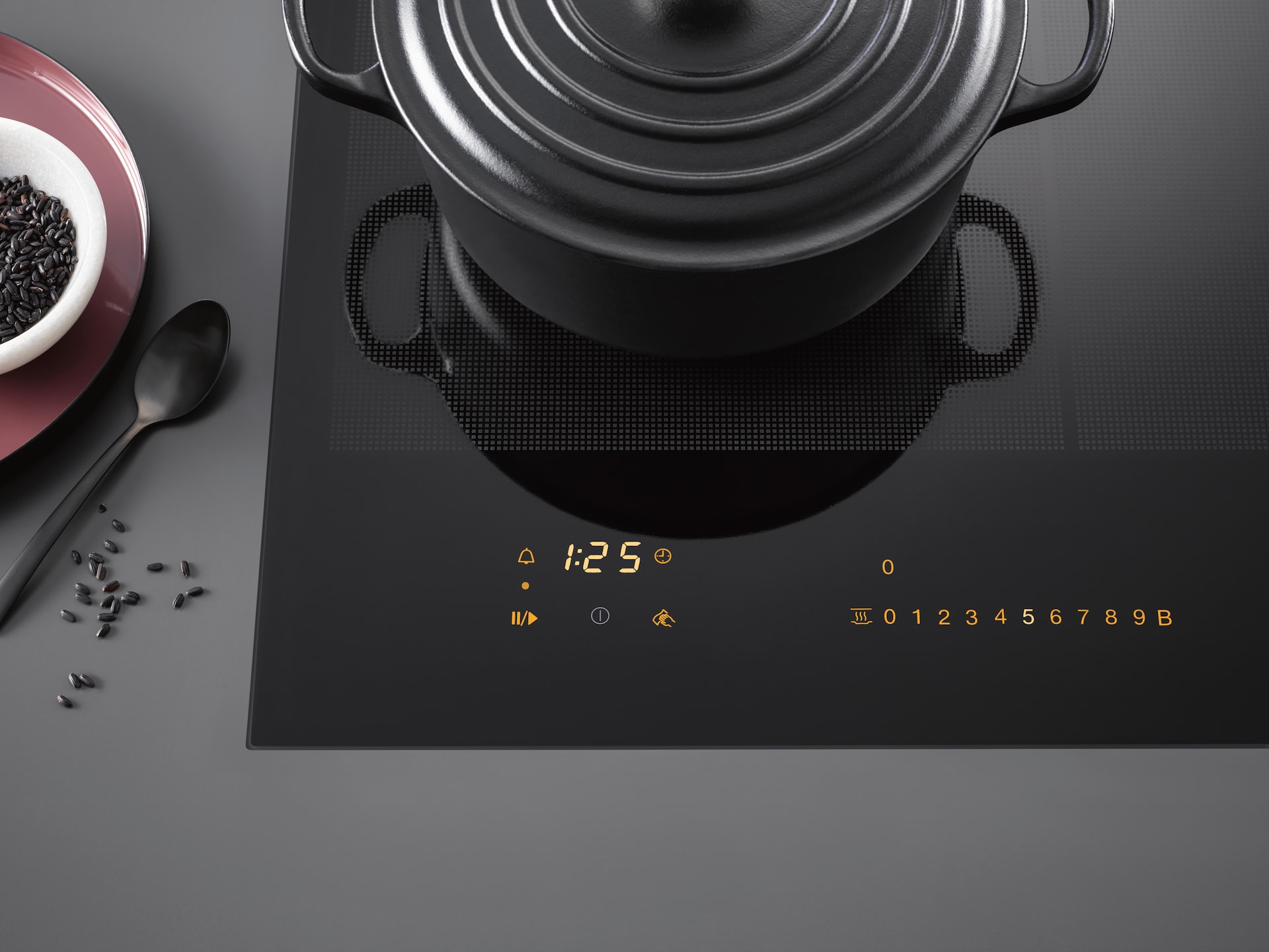 For especially rapid heating: with Miele's exclusive TwinBooster function, you can concentrate the power of two cooking zones into a single cooking zone if required. Or you can distribute the induction power individually for even more flexible cooking.