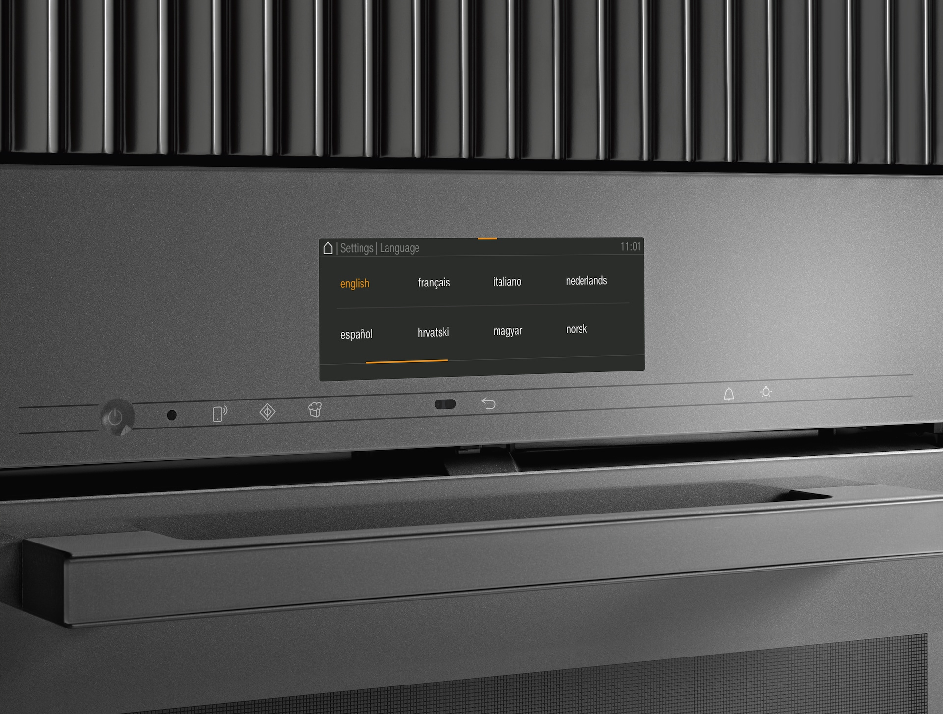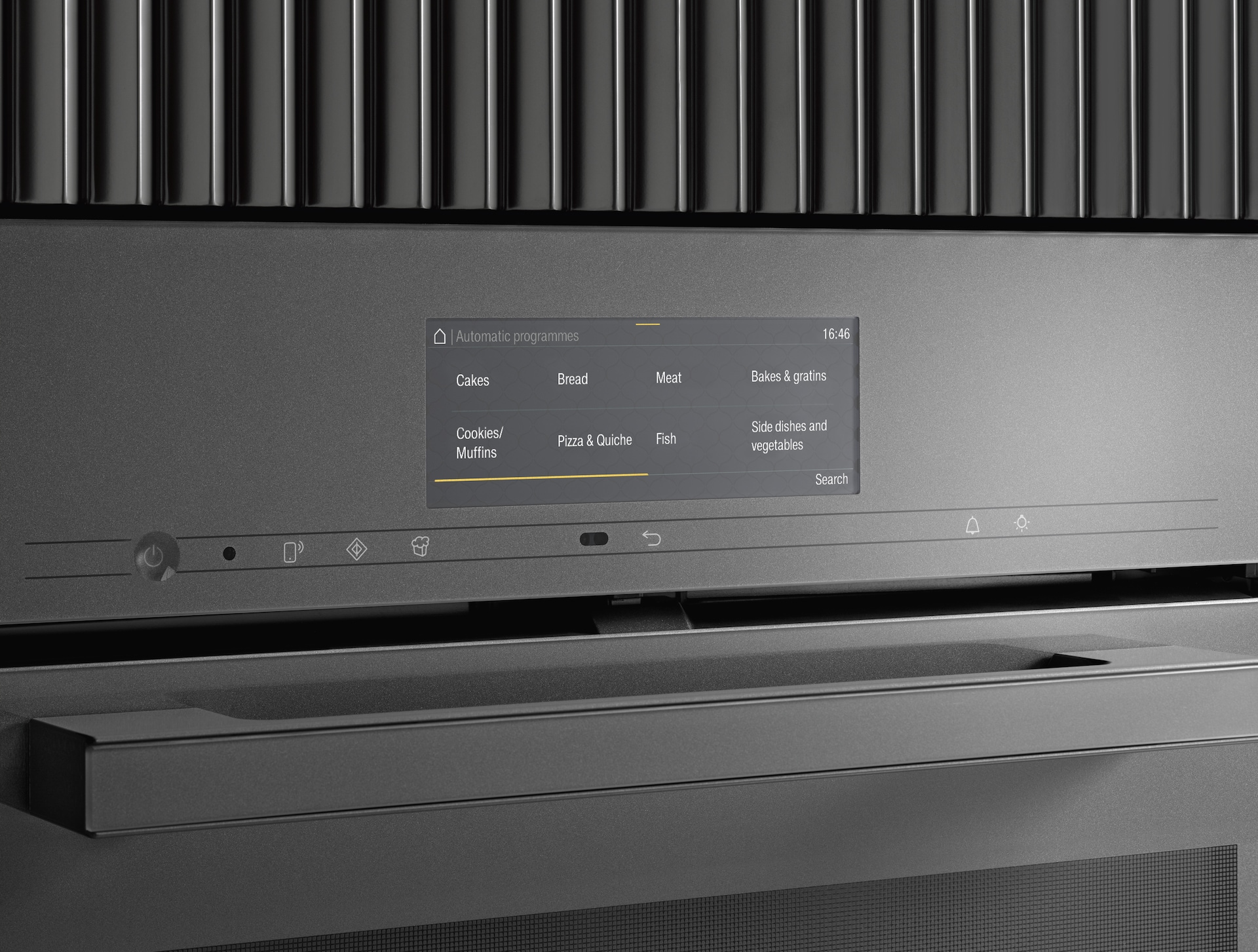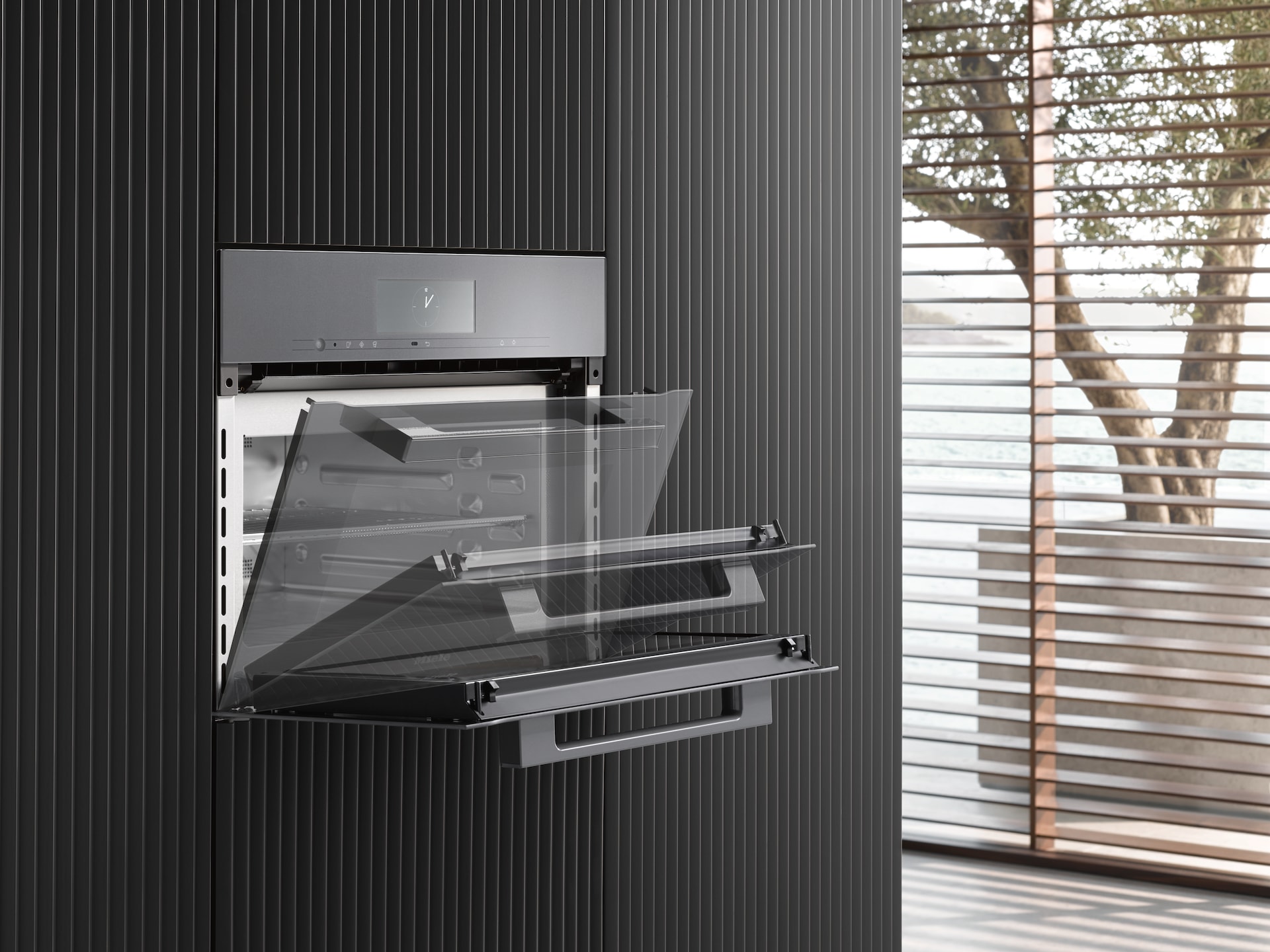 A real eye-catcher: the door features a sophisticated cushioning mechanism for elegant opening and closing. It opens to 90° – for convenient, unobstructed access to the food in the oven compartment.