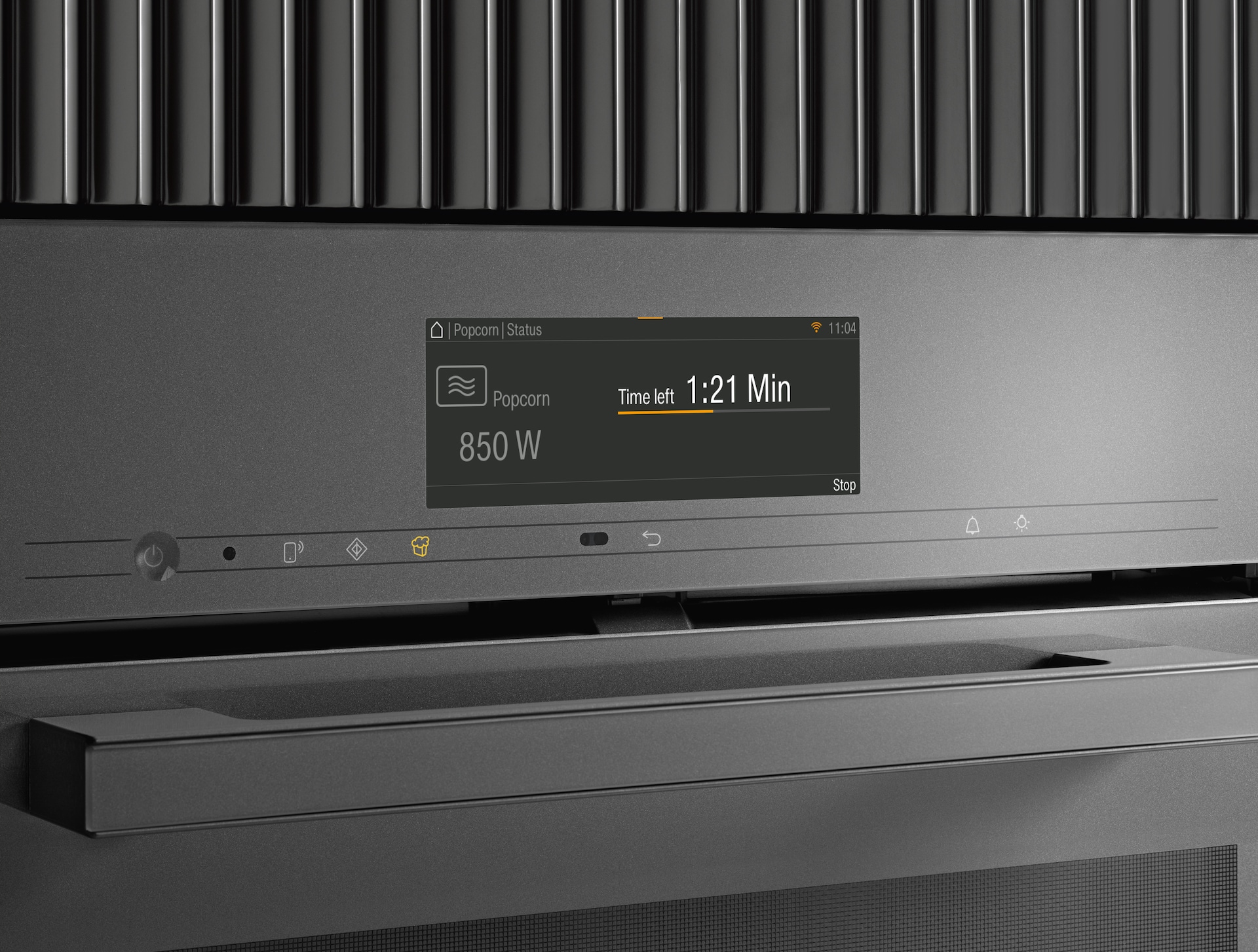 Get that cinema feeling at home: Miele Popcorn button makes it easy to prepare microwave popcorn in next to no time.