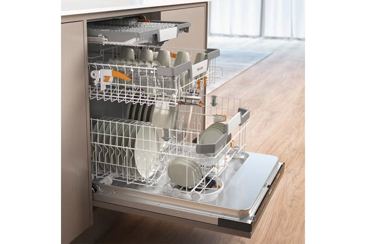 Miele dishwashers offer space for up to 14 standard place settings. Miele baskets ensure that Miele comply with the relevant standards while also fulfilling your wishes and needs – all your items will be perfectly positioned and are thoroughly cleaned and dried.