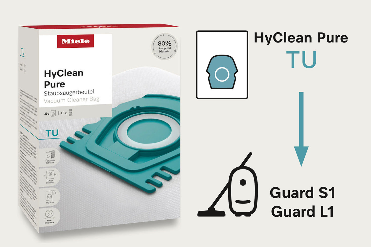 Enjoy a dust-free environment with the Miele HyClean vacuum cleaner bags. Only Miele HyClean vacuum cleaner bags match your Miele vacuum cleaner perfectly, ensuring that picked-up dust is reliably guided into the vacuum cleaner bag. This securely locks the dust (and fine dust) inside. You can easily identify the right bag by the colour-coordinated collar.