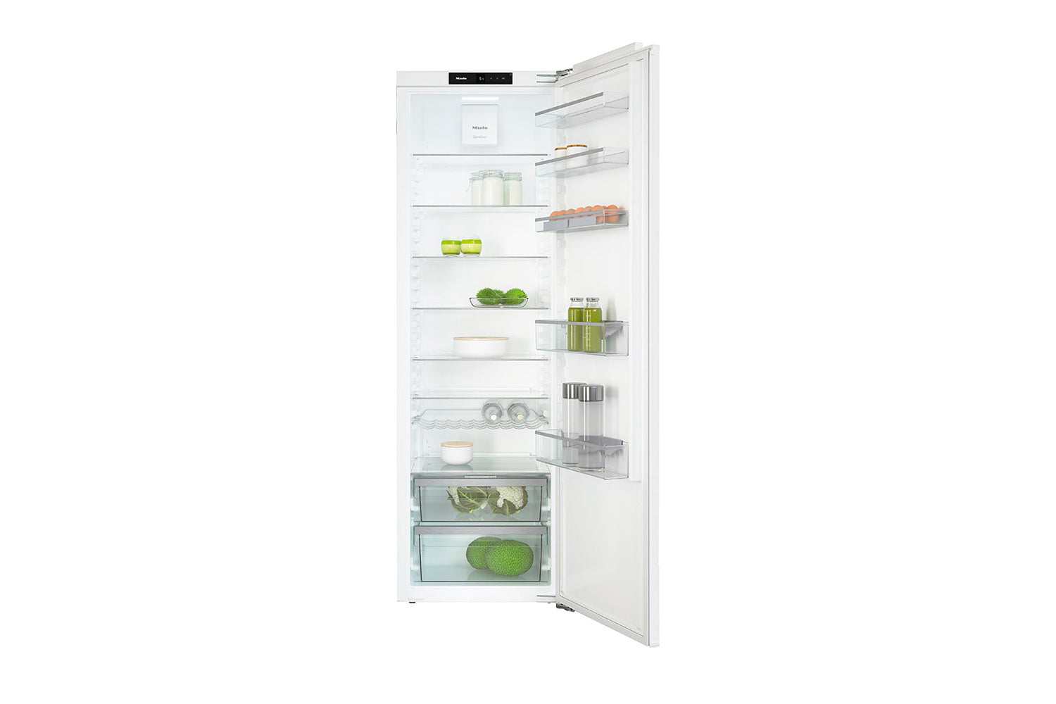 More volume: Miele refrigeration appliances with ComfortSize provide ample space to store your food. The larger depth means that you can easily slide in a baking tray above the PerfectFresh Pro or PerfectFresh Active compartment. This leaves room to accommodate even bulky items with ease.