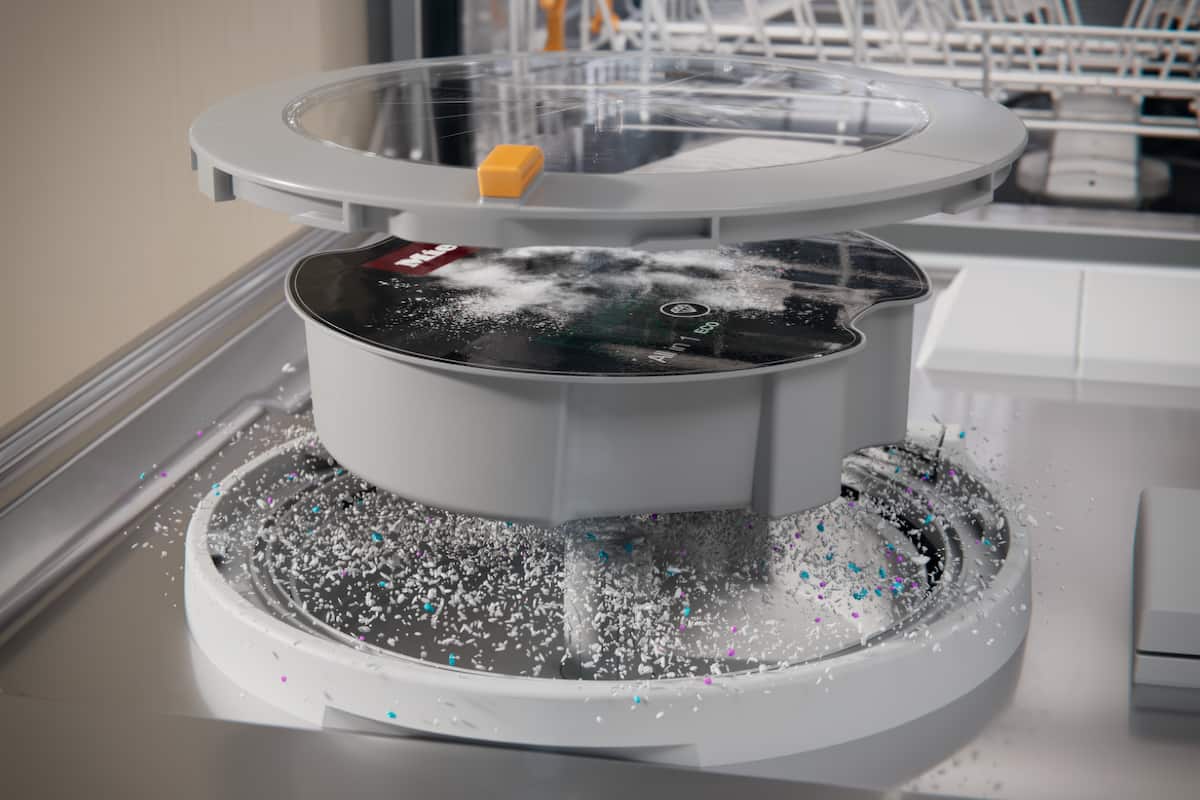 For around one month, you won’t have to worry about your dishwasher having sufficient detergent whenever you start a programme, as the innovative dispensing technology with PowerDisk contains enough powder granulate for an average of 20 dishwashing programmes (in the Normal 60 °C programme). This gives you a new kind of freedom.