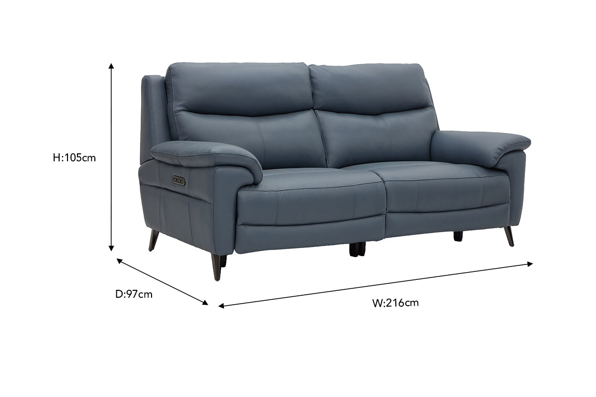 Milo 3 Seater Sofa | Power Recliner | Leather | Smoke Blue