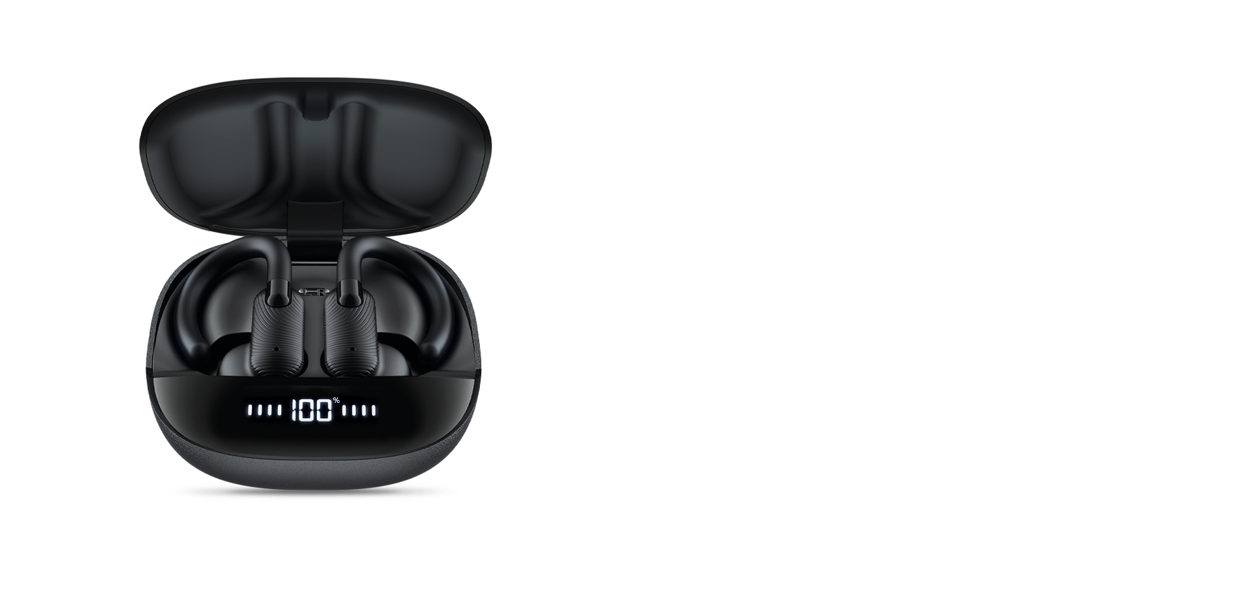 Designed with over-ear hooks for a snug and stable fit, the Streambuds Sports Charge 2 sports earbuds stay in place no matter how vigorous your activity. The charging case, compatible with both wired and wireless charging, ensures your earbuds are always ready to go. An integrated digital display screen on the case keeps you informed about the battery status at a glance.