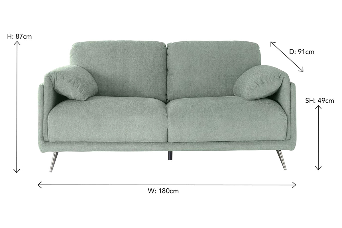 From top to bottom this sofa features a number of striking features that are sure to catch your eye. Starting with the soft fabric upholstery in green that radiates a warm and inviting energy and the highly durable wooden frame that’s sure to stand the test of time. It’s complete with the sleek black metal legs that give this look a modern twist. With seats that are filled with pocket coils and foam, this sofa prioritises comfort and support as well as the aesthetic.