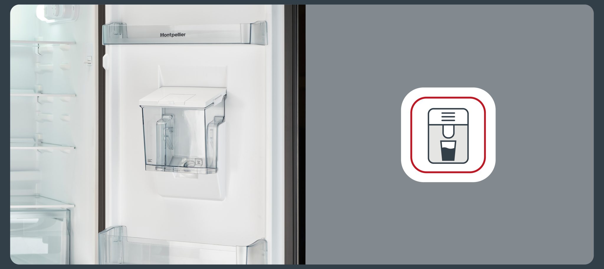The non-plumbed water dispenser is located on the front of the fridge door, and the water tank can easily be removed to be filled up. Always have chilled water at your fingertips for when you need to cool down and rehydrate.