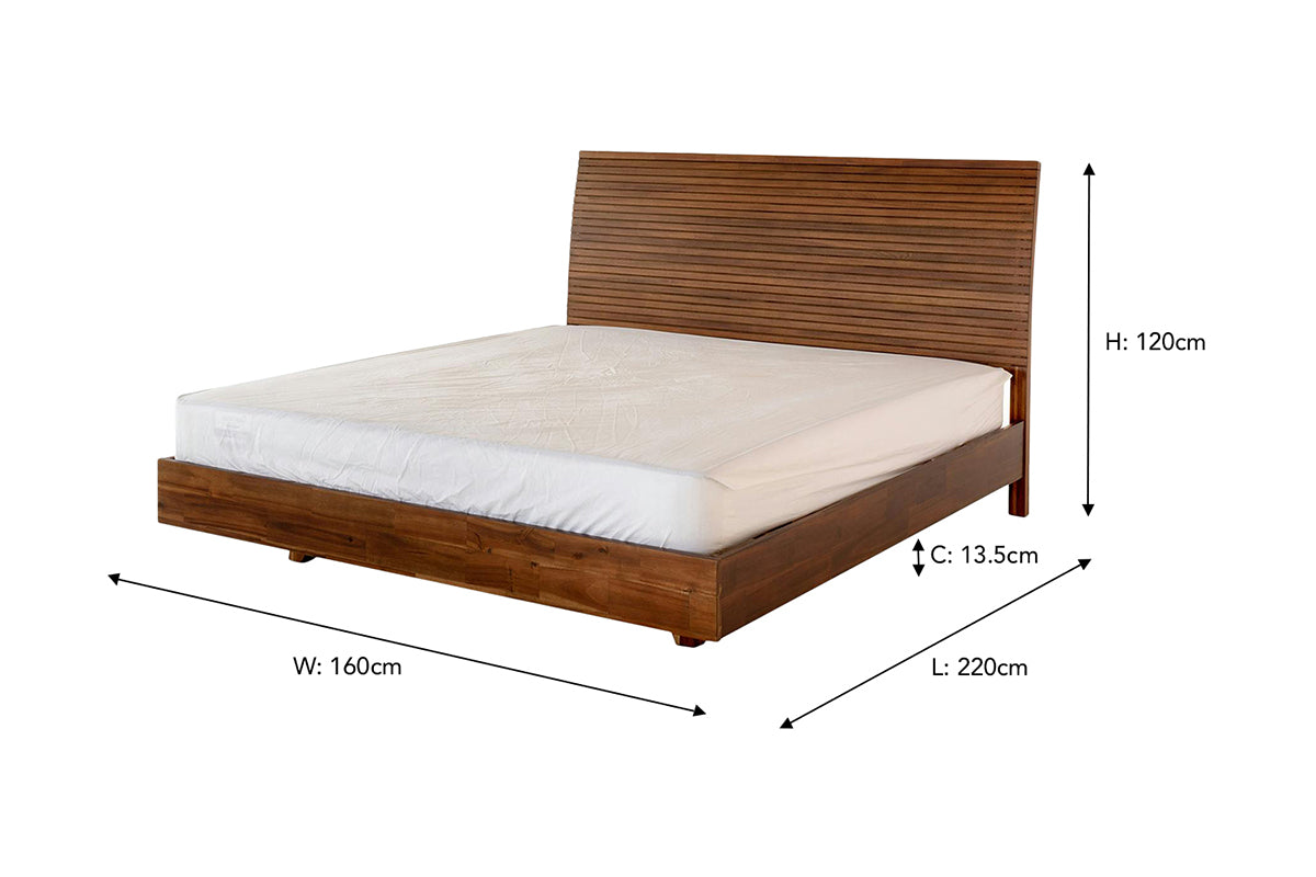This bedframe boasts a number of eye-catching features; it’s high sloping headboard, which gives the bed a sleigh-like feel, is perfectly contrasted by the low footboard. Slatted pieces of super-durable acacia wood encase this frame creating a foundation for solid sleep for years to come.