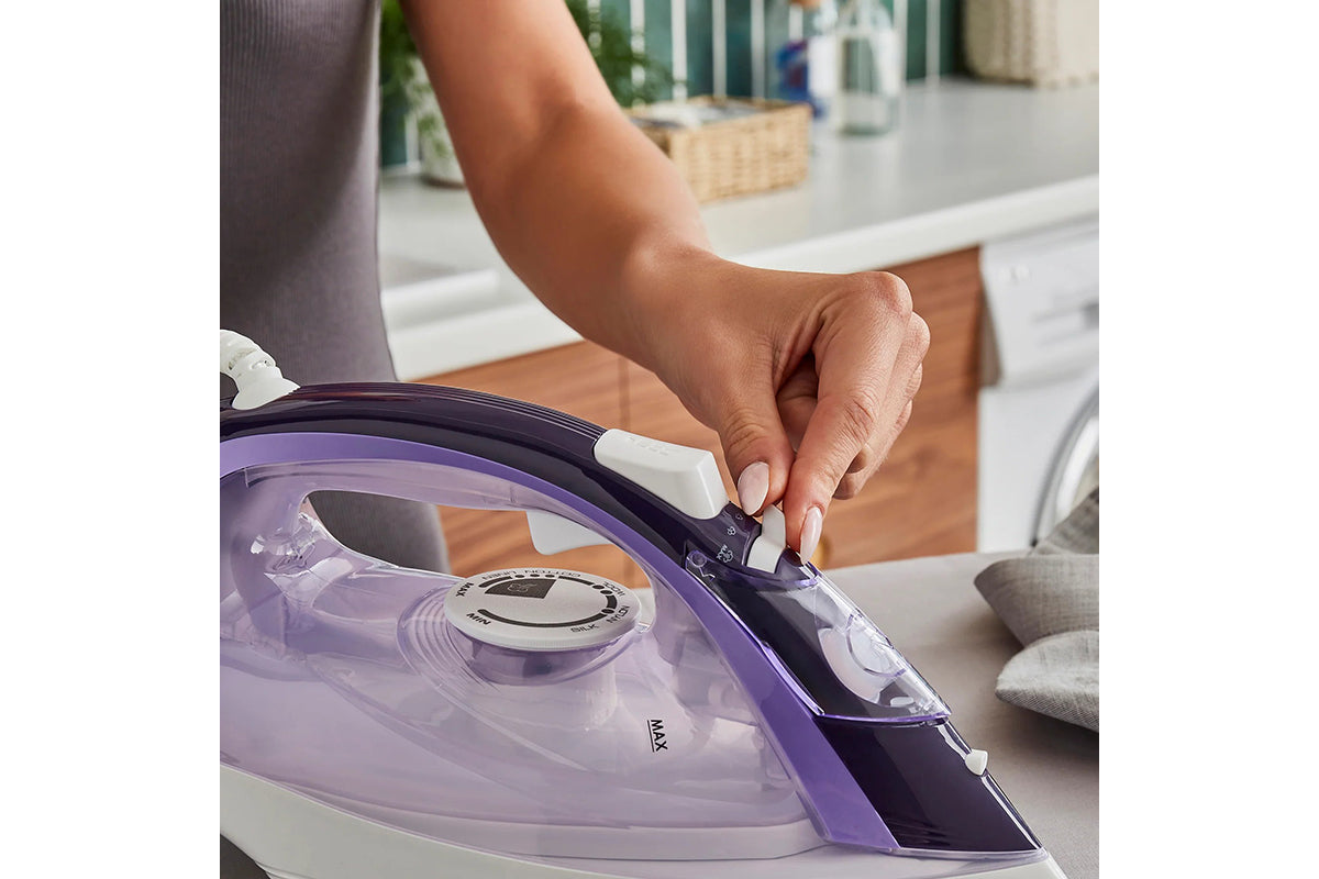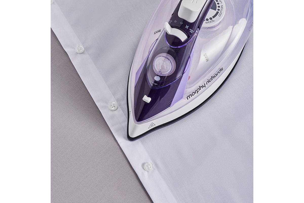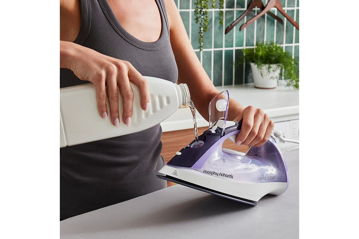 The Morphy Richards Crystal Clear Amethyst Steam Iron has a clear water tank, making the water level easy to view & comes with an extra-long 2.5m cable for easy reach. The large filler cap makes topping up the water level easy and helps to avoid spills, and the convenient cable clip helps to keep the cable in place while the iron isn’t in use.