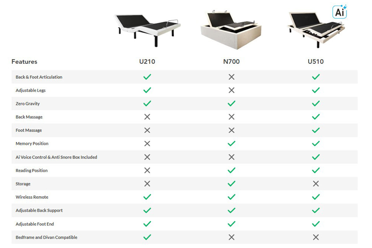 The U210 Motion Base allows you to completely tailor your bed to own personal definition of comfort. Using the remote control, this bed gives you the freedom to move both the feet and the back into the most comfortable position for you. It includes a zero-gravity setting designed to aid in that feeling of weightlessness and support. If you or your partner snore, buy the optional anti-snore module that helps reduce this by listening in and slightly raising the bed for a short period before lowering it again, ensuring a more well-rounded rest.