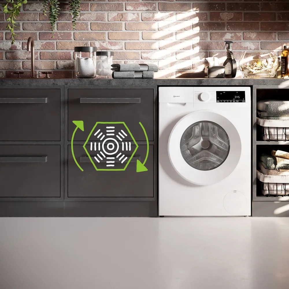 With neff cardan drive system, installing your built-in washing machine is very convenient. It enables simple adjustment of the washing machine to match to the height of your furniture. Thanks to cardan drive, the height of the rear feet of the washing machine can be adapted to any niche up to 60 mm. Simply place the washer into your kitchen furniture and adjust the back feet easily with a screwdriver from the front.
