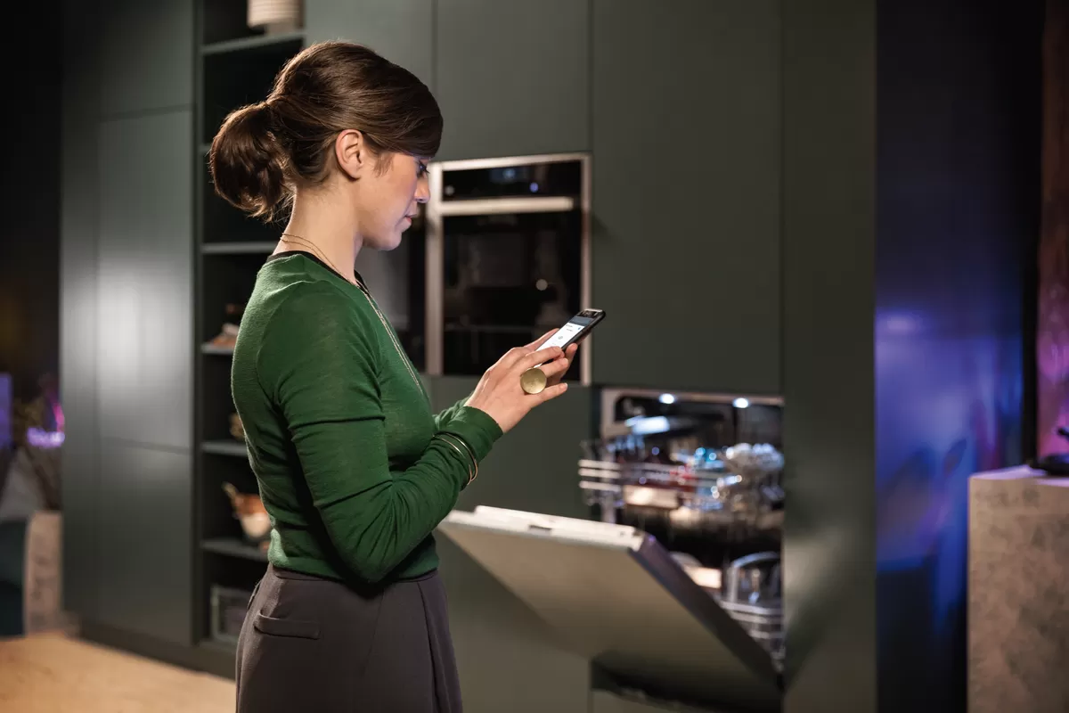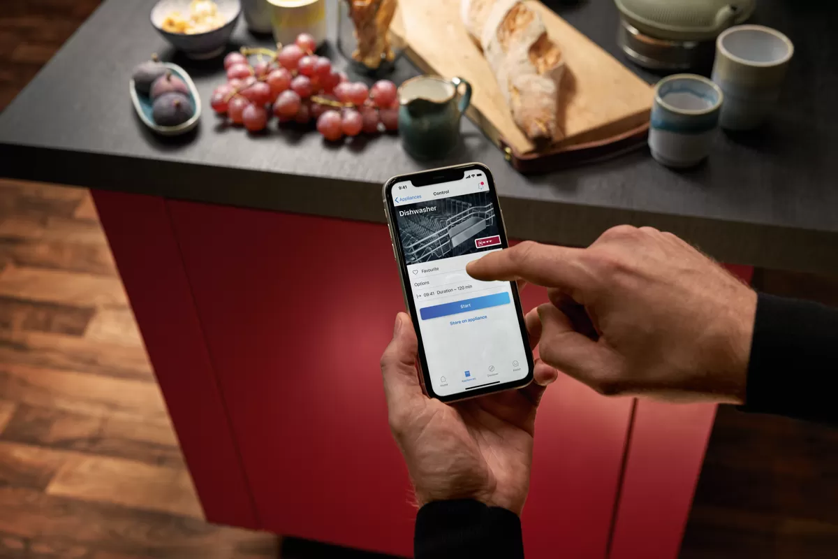 Home Connect joins your dishwasher to your smart home network. Thanks to this interoperability, you can enjoy new flexibility with remote services, and if you like you can start your dishwasher via voice command. Or you might relax into the comfort of hearing music, watching the lights blink, or changing the colour when the dishes are sparkling again. In other words, your dishwasher is passionately connected to your digital convenience – both inside and outside the kitchen.
