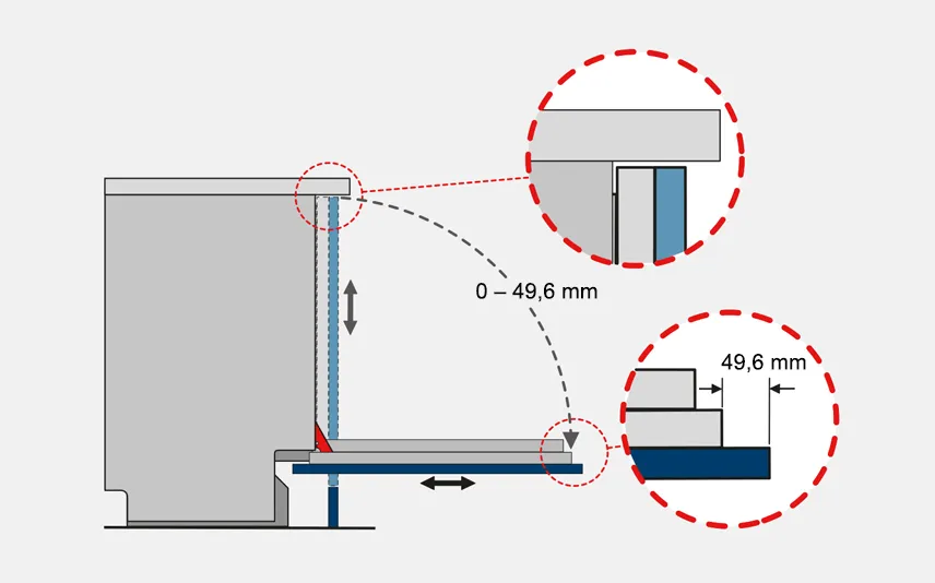 Vario Hinge lets you install your dishwasher at floor level or higher. When you open the door, it lifts up the front panel so that it opens freely and doesn’t make contact with base underneath. Now you don’t have to compromise on kitchen design, and your dishwasher will combine effortlessly with every other unit.
