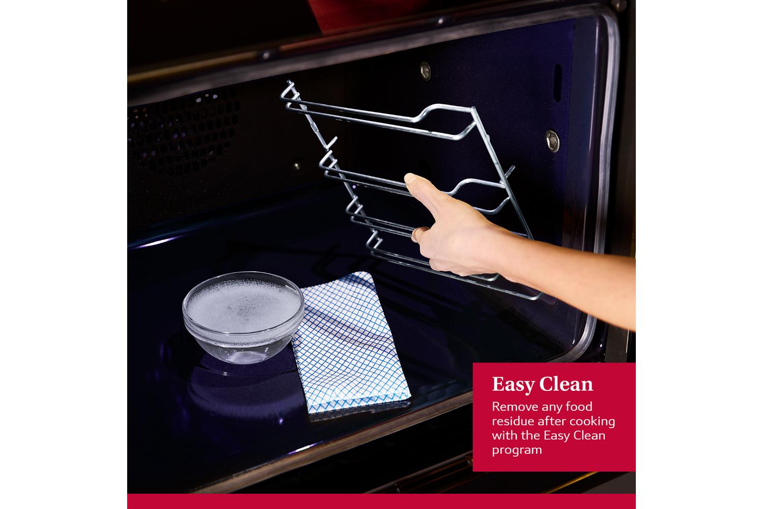 Roasting chicken no longer means a big cleaning job. Eco Clean makes cleaning easier than ever. The ecolytic coating traps grease generated during baking and roasting, and breaks it with each cooking cycle. When the oven reaches high temperatures, the rear wall cleans itself. Then Easy Clean steps in to take care of the base and side walls of the oven interior.