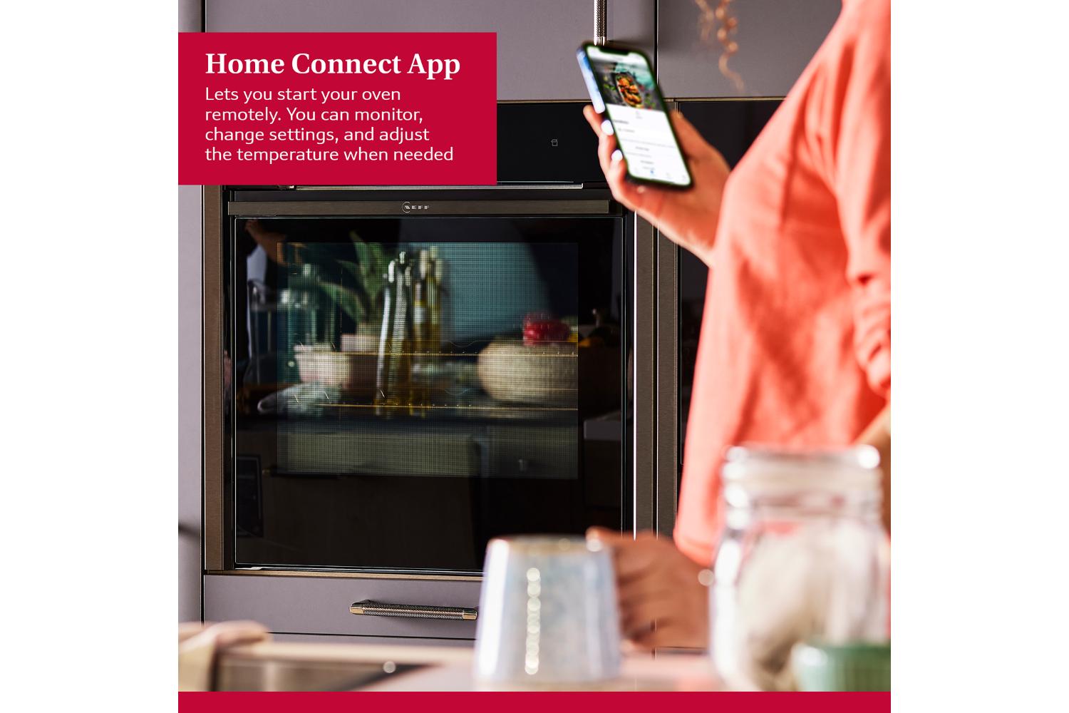 Unlock your oven’s full potential. Simply sync your oven to your Home Connect account (www.home-connect.com) and take control via the app – however, whenever and wherever you want! Take advantage of exciting offers from Neff partners, discover inspiring recipes and stay updated on the status of your oven. Welcome to a personalised cooking experience! To enjoy all the benefits of Home Connect, simply sync your oven to your Home Connect account.