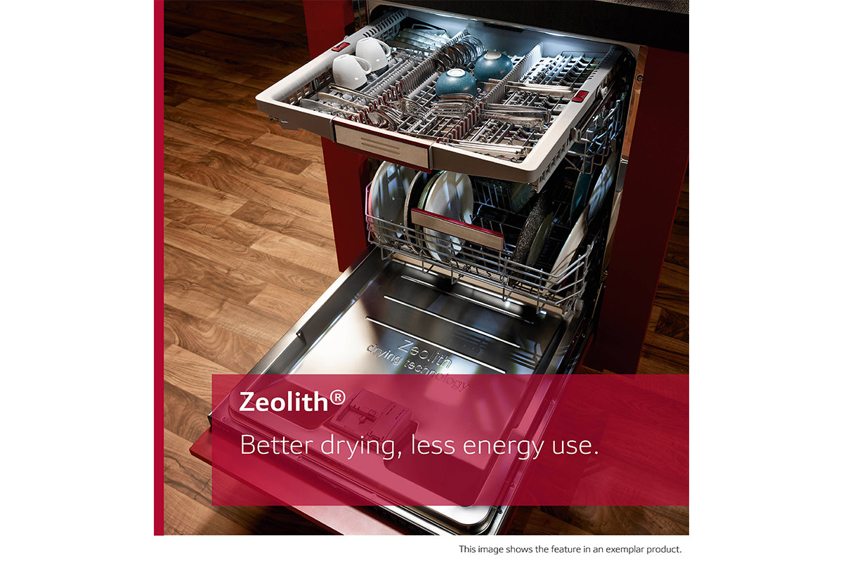 The Zeolith compartment, located under the dishwasher cavity, contains natural minerals. During the drying phase, these minerals absorb moisture and release hot air. This ensures efficient drying and leaves an impressive sheen on items of all shapes and sizes, including difficult-to-dry plastic goods. And because they recharge during the next washing cycle, you get great, longlasting drying results, without the maintenance worries.