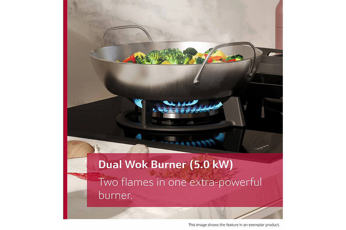 Dual Wok Burner Up to 5.0 kW: Use One Gas Flame for Simmering, Two for Sizzling Stir-fries