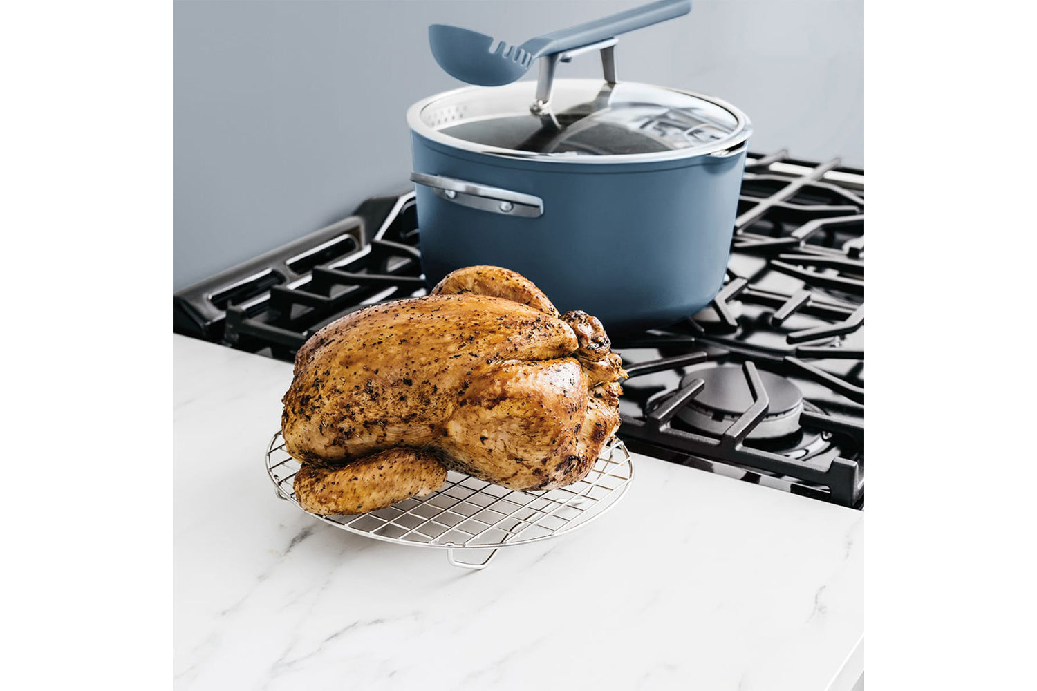 This all-in-one pot is thoughtfully designed with an integrated stainless steel roasting/steaming rack – elevate ingredients for perfectly steamed dumplings, bao buns, vegetables and more, or cook your favourite roast to perfection.