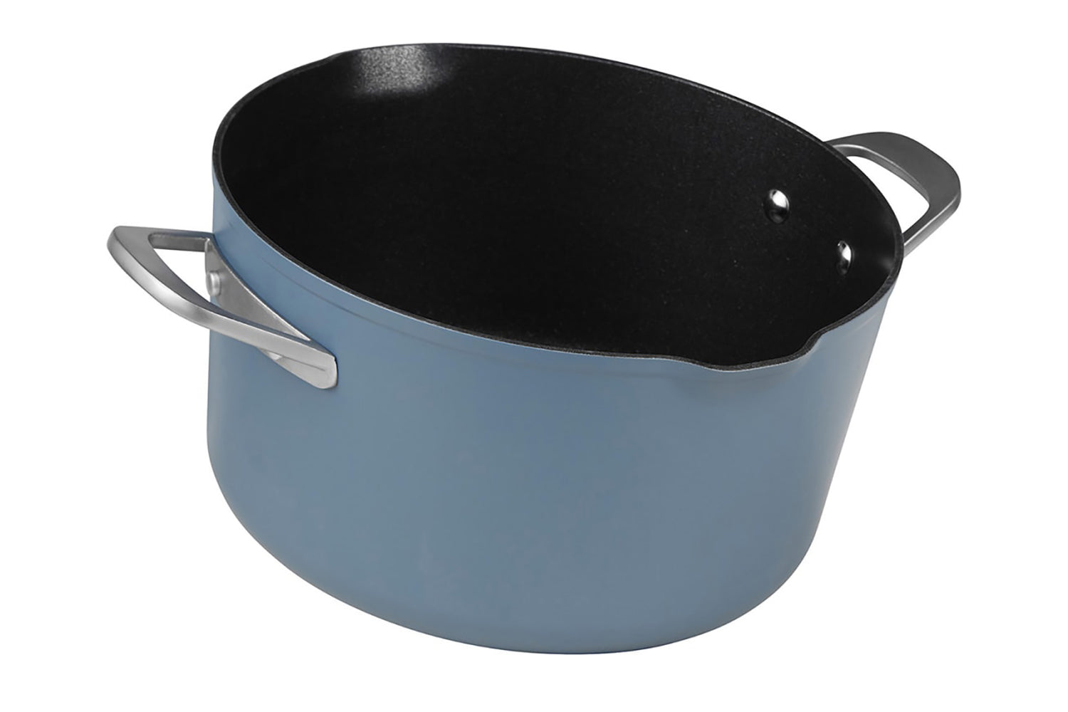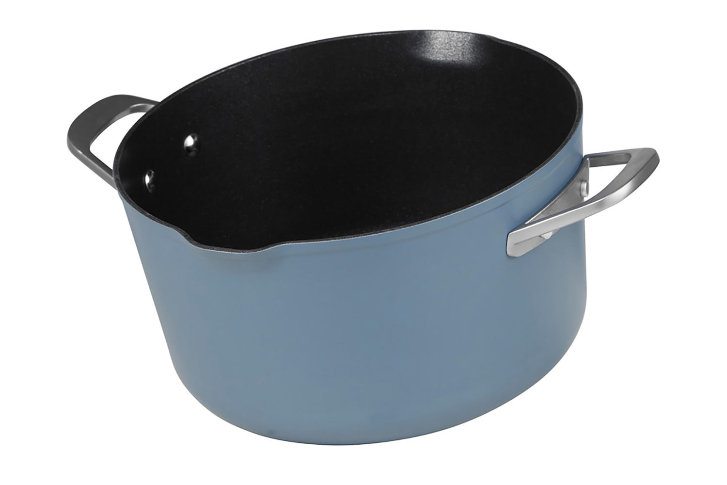 Everyday cooking is made even easier with cast stainless steel handles, two pour spouts and tapered walls for easily scooping, scraping and serving.