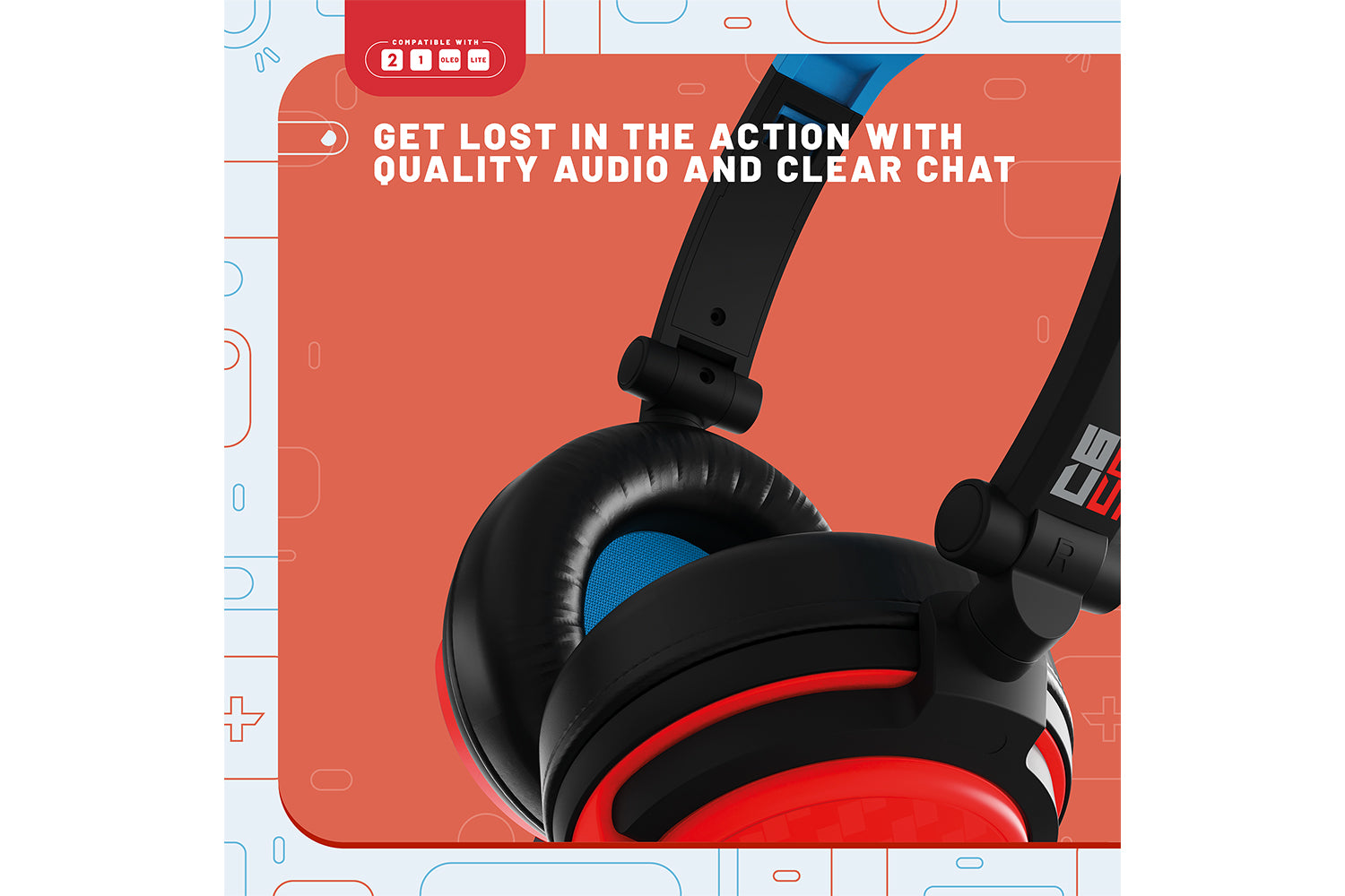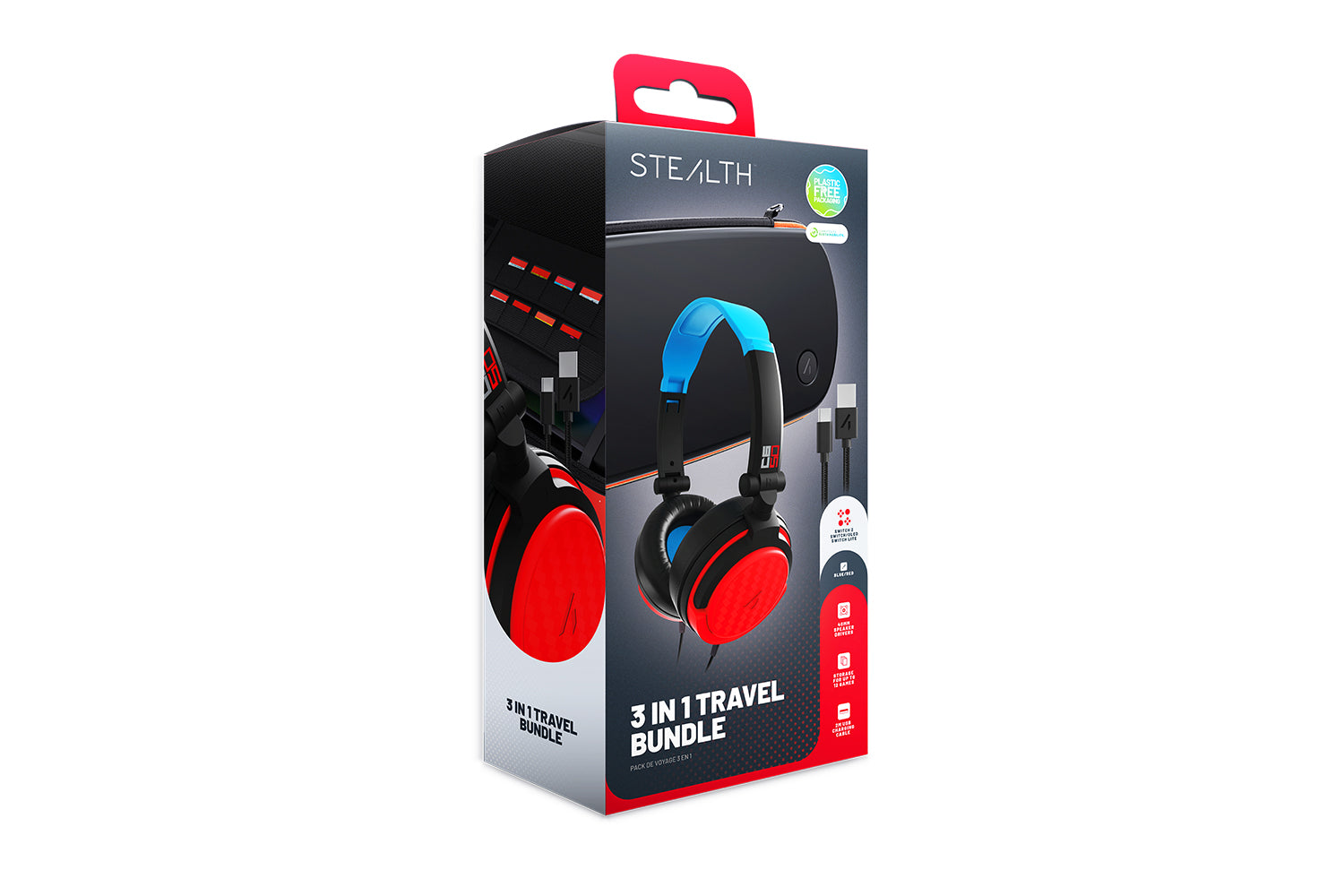 Designed to complement your console, the case and headset’s neon blue and red accents add a stylish touch to your gaming gear.