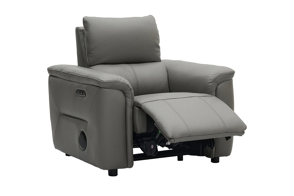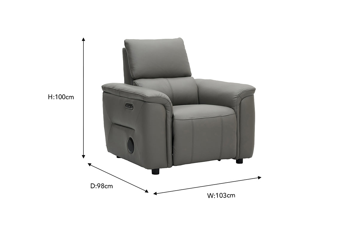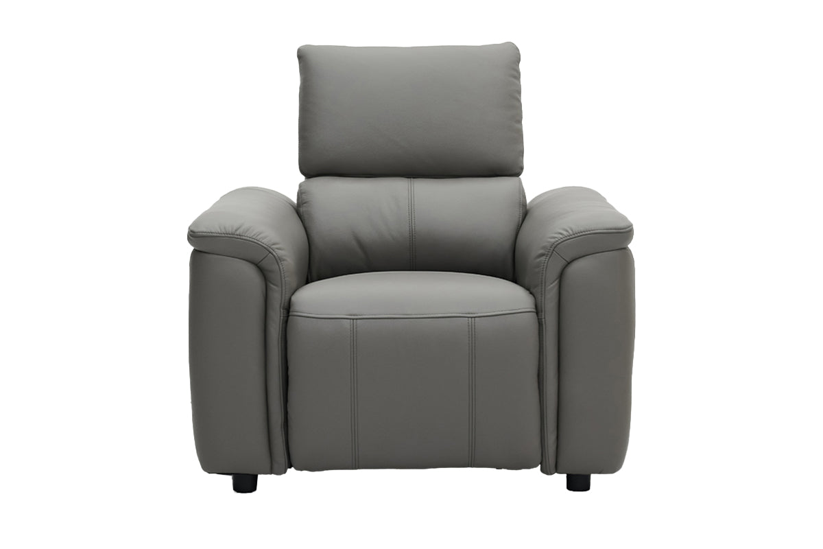 Compact, stylish, and incredibly comfortable the Noah armchair is your ideal reclining chair for smaller spaces or paired seating. Upholstered in a smooth, grey leather, it adds an, inviting tone to your living room while offering the ultimate in relaxation. The sofa’s plush cushions combine foam, fibre fill, and Dacron layers for superior softness and support, while the sinuous spring system ensures lasting durability and consistent comfort.