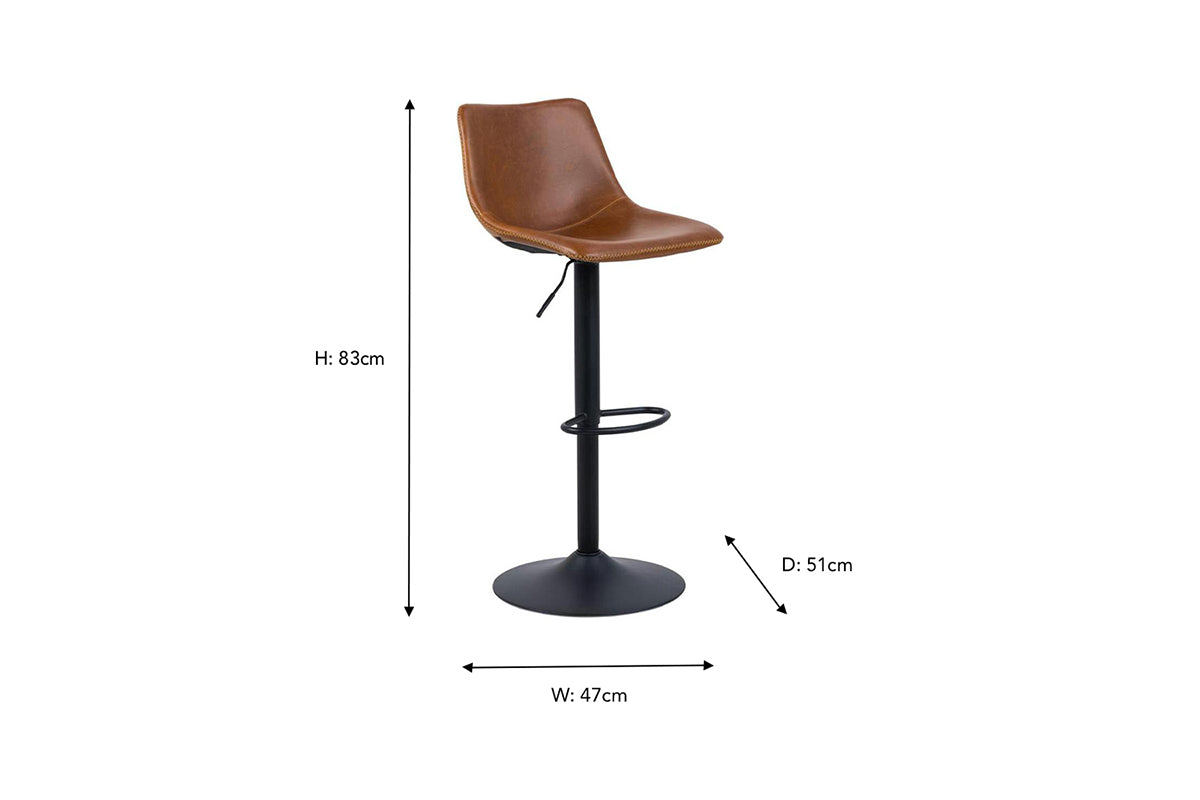 The Oregan stool is the kind of subtle statement piece that makes a lasting impression on friends and family when visiting. Simplistic in appearance it blends in with an array of interior styles. It features a soft l-shaped seat with a short backrest, upholstered in a faux leather for comfort and style. The added footrest, swivel function, and adjustable height allow for ease of movement while ensuring you stay comfortable while dining. It’s made of fire-resistant materials to ensure longevity. It comes in a stunning brandy hue with subtle cream stitching for visual interest. All this rests upon a complementing black steel base.